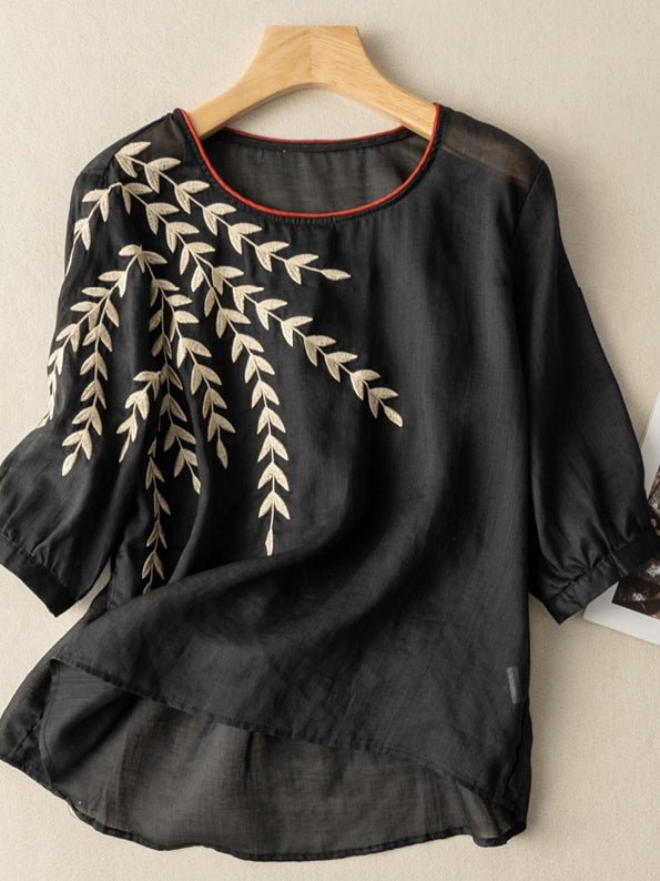 Embroidery Cotton And Linen T Shirt Short Sleeve