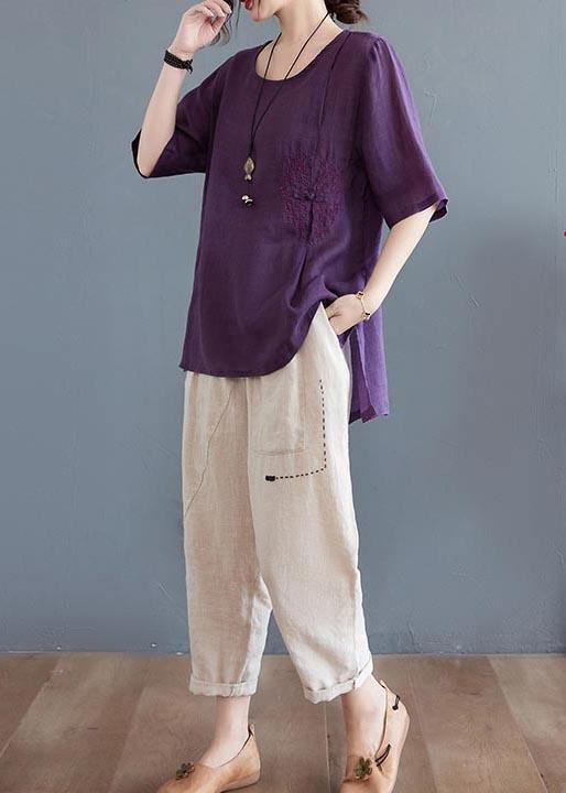 Embroidery Cotton And Linen T Shirt Short Sleeve