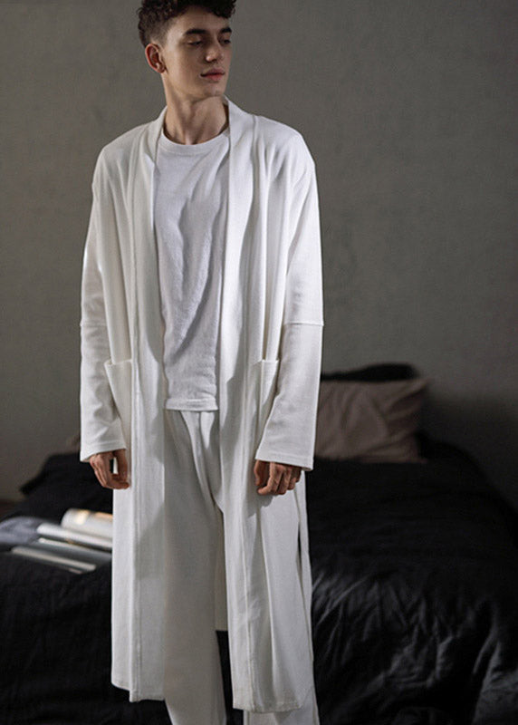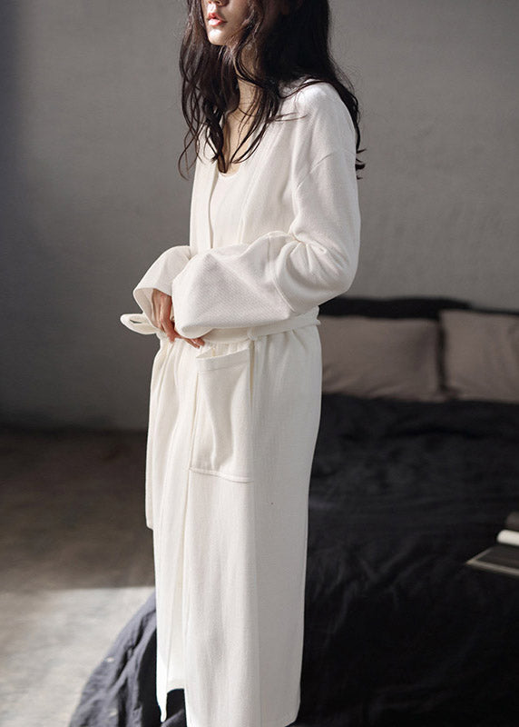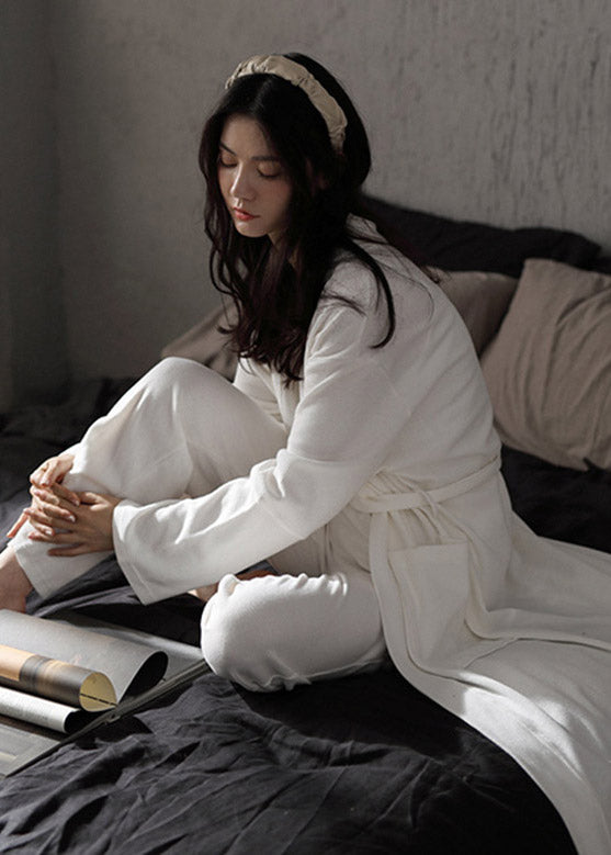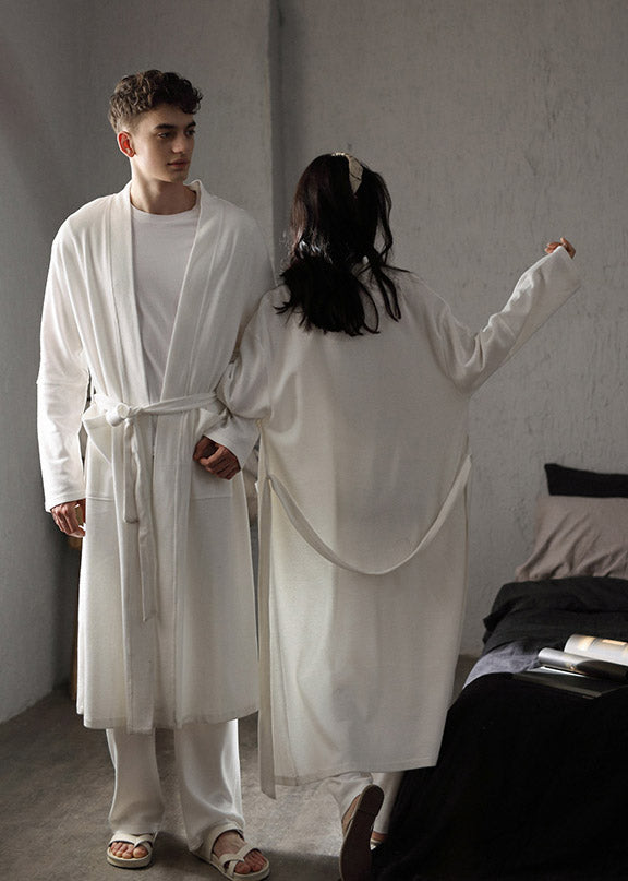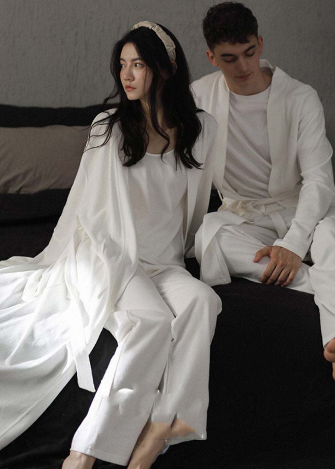 Brief White V Neck Tie Waist Solid Cotton Couple Pajamas Two Piece Set Spring