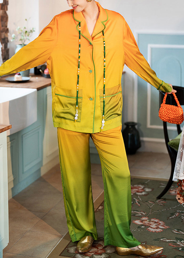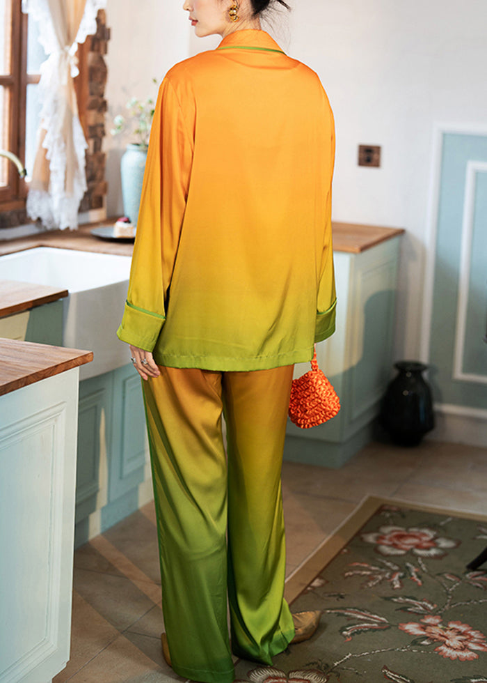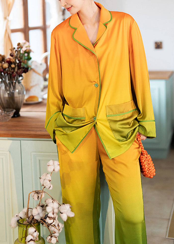Elegant Orange Gradient Color Pockets Ice Silk Pajamas Two Piece Set Spring