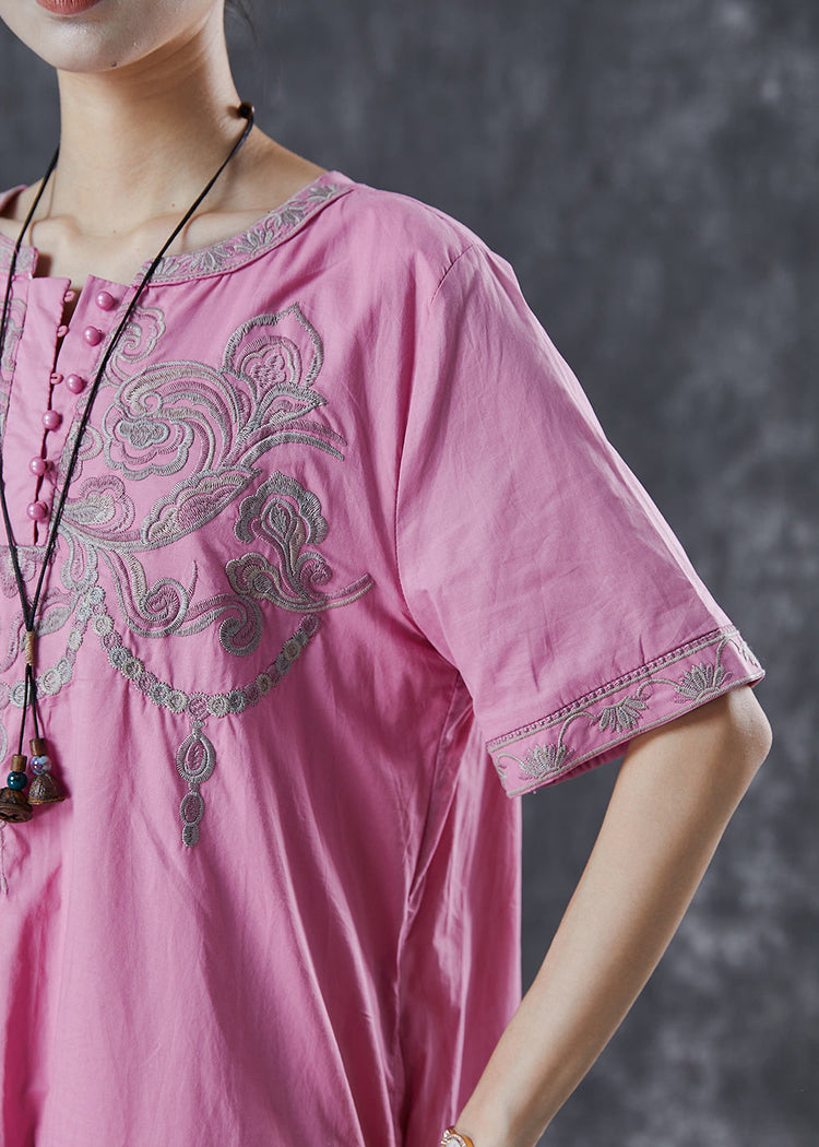 Vintage Pink Embroidered Cotton Long Dress Summer