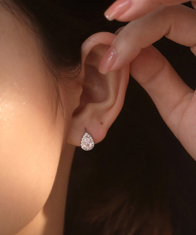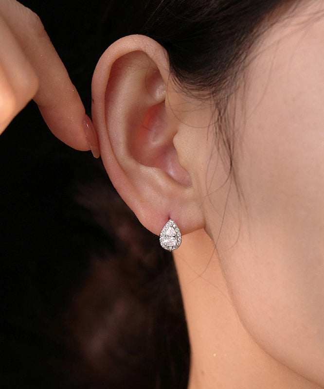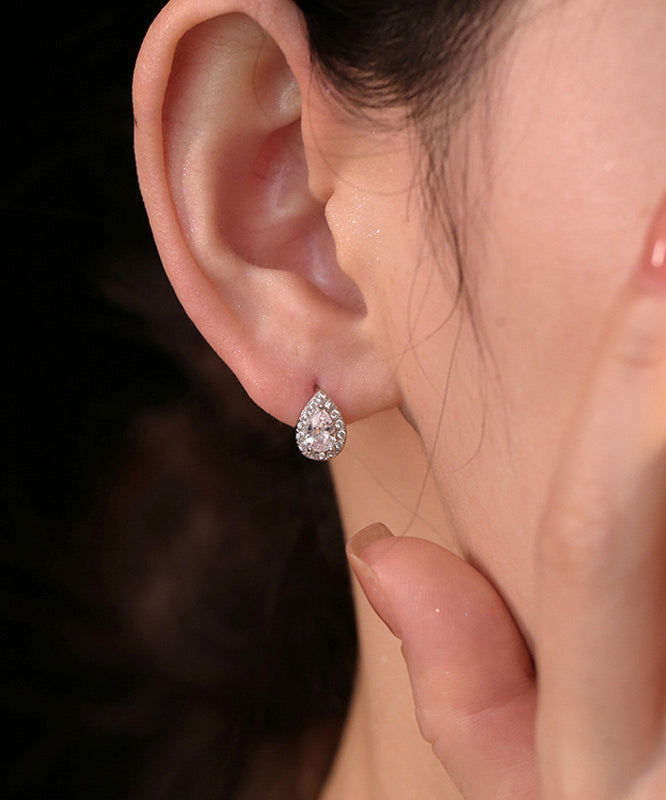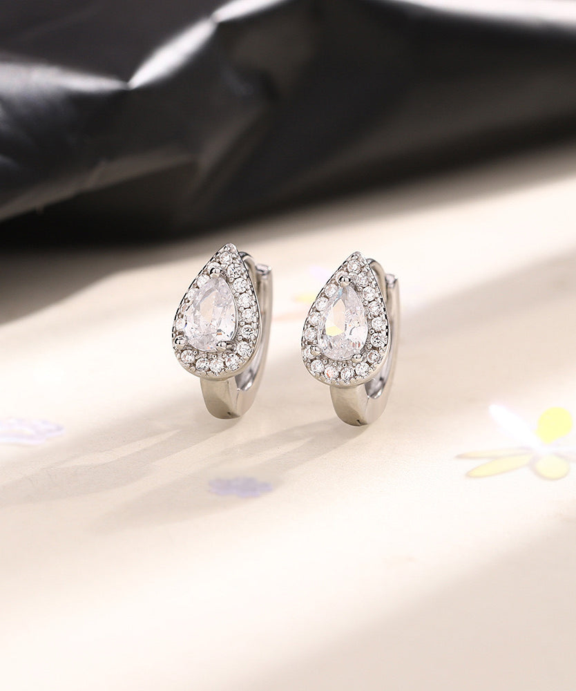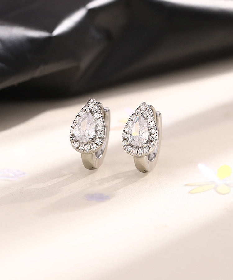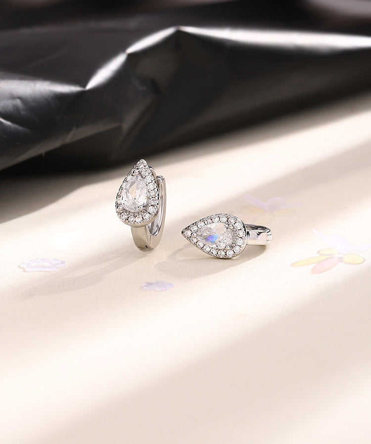 Modern Silk Sterling Silver Zircon Water Drop Hoop Earrings