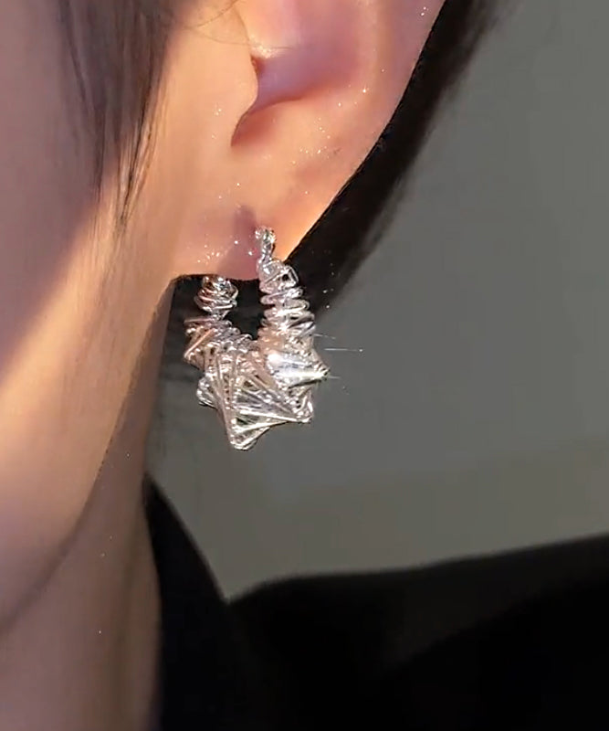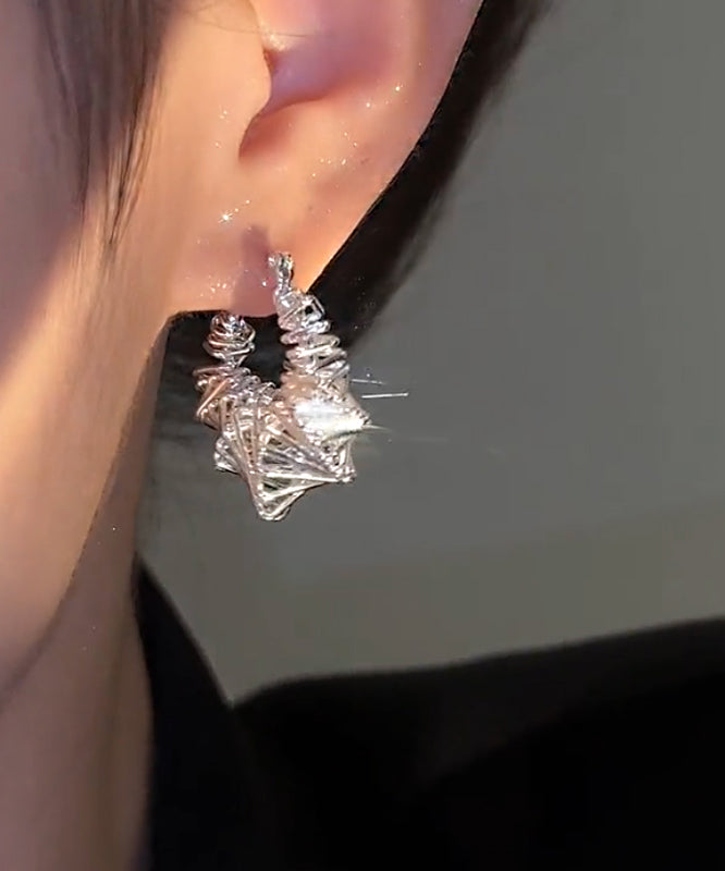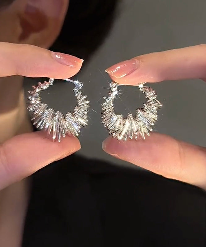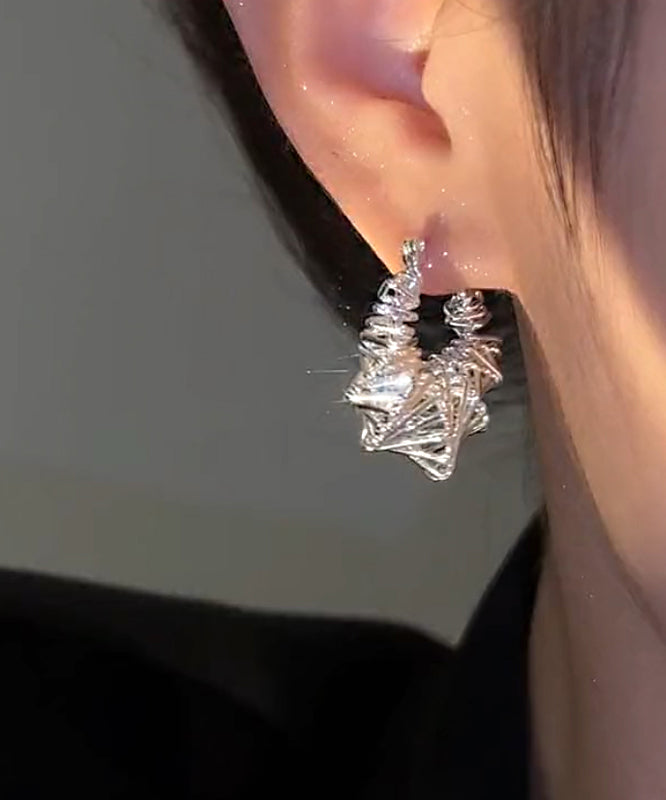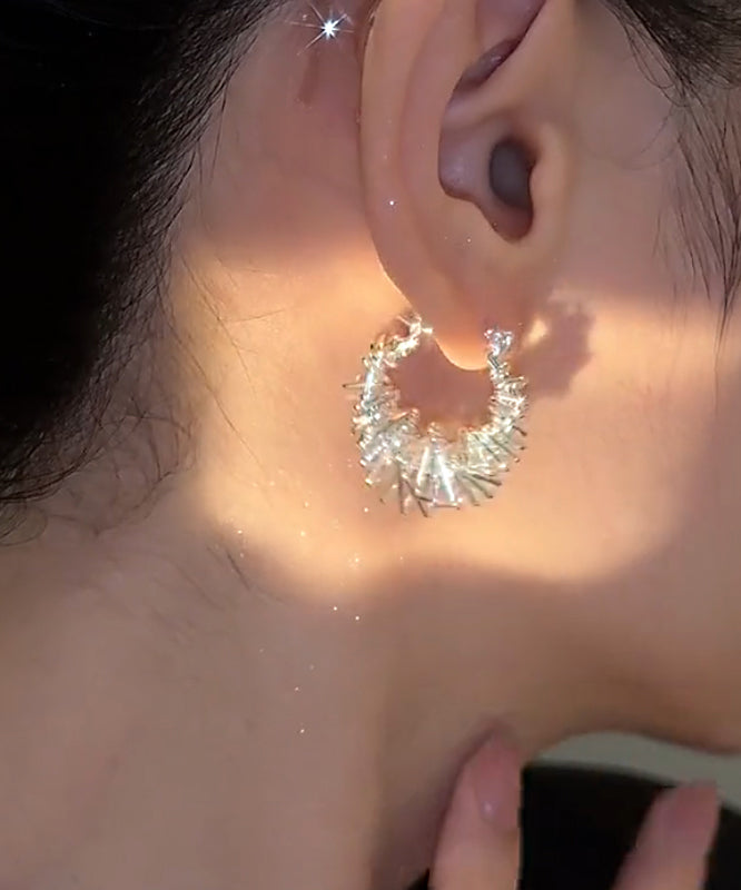 Brief Silk Copper Zircon Wrinkled Hoop Earrings