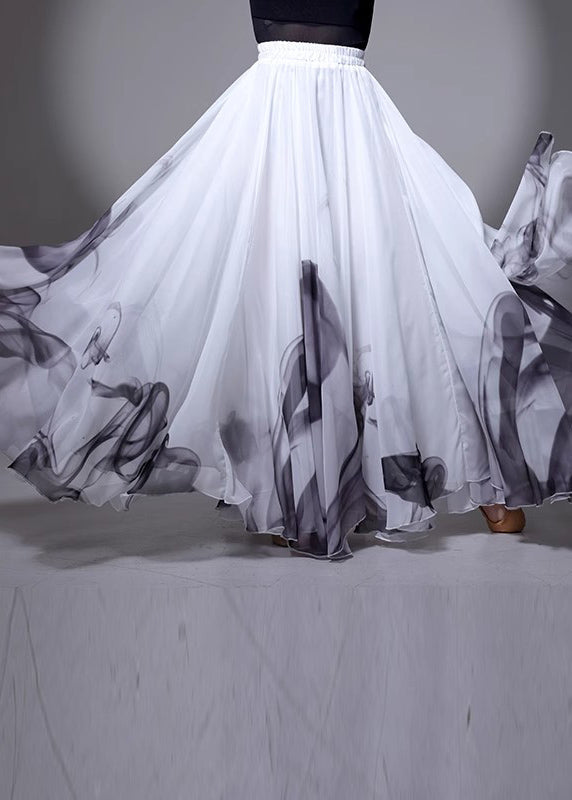 Chinese Style White Elastic Waist Silk Skirt Summer