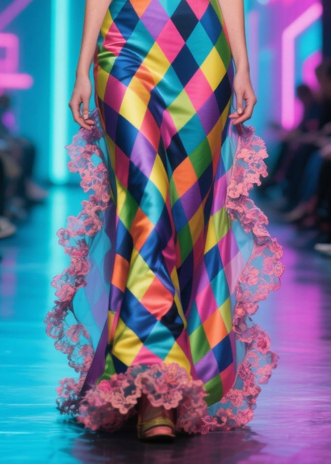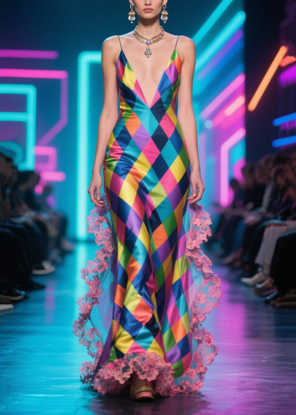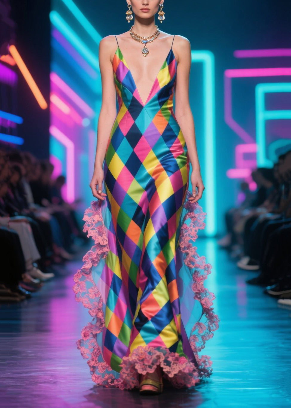 DIY Colorblock Plaid Patchwork Lace Silk Vestidos Dress Summer