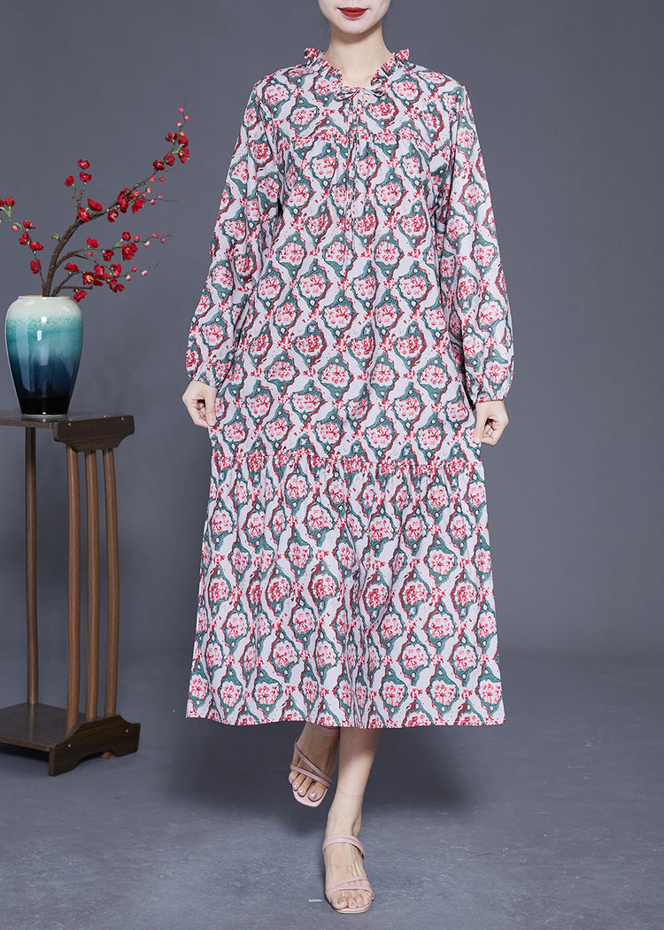 DIY Ruffled Lace Up Print Silk Long Dress Spring