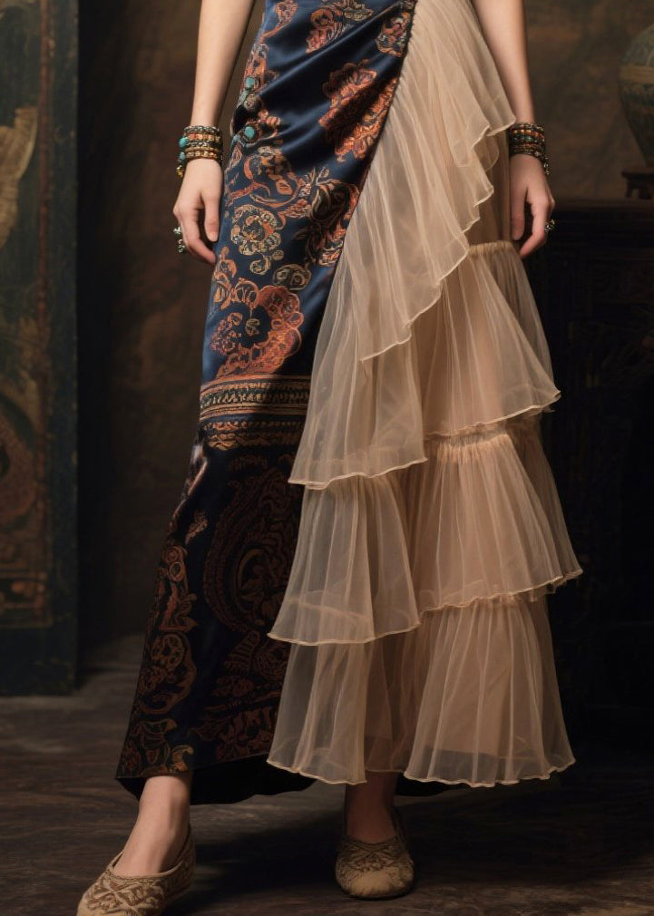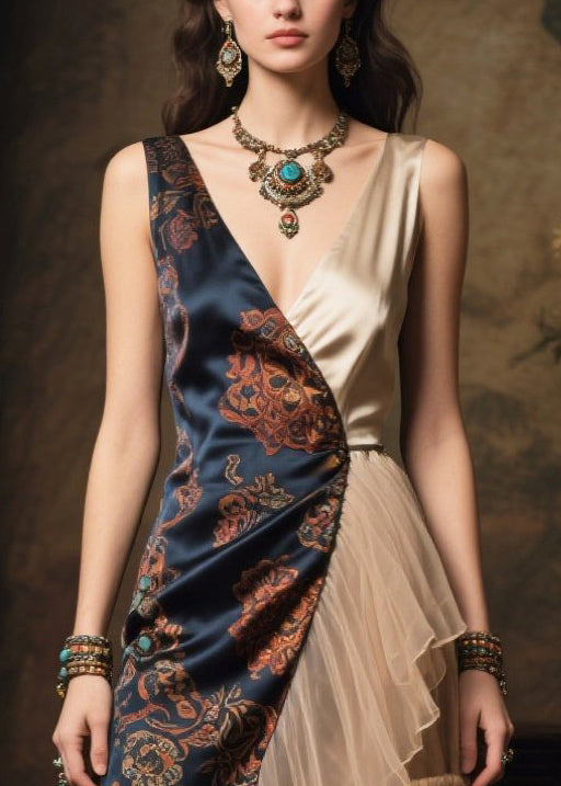 Elegant Asymmetrical Patchwork Tulle Silk Party Dress Summer