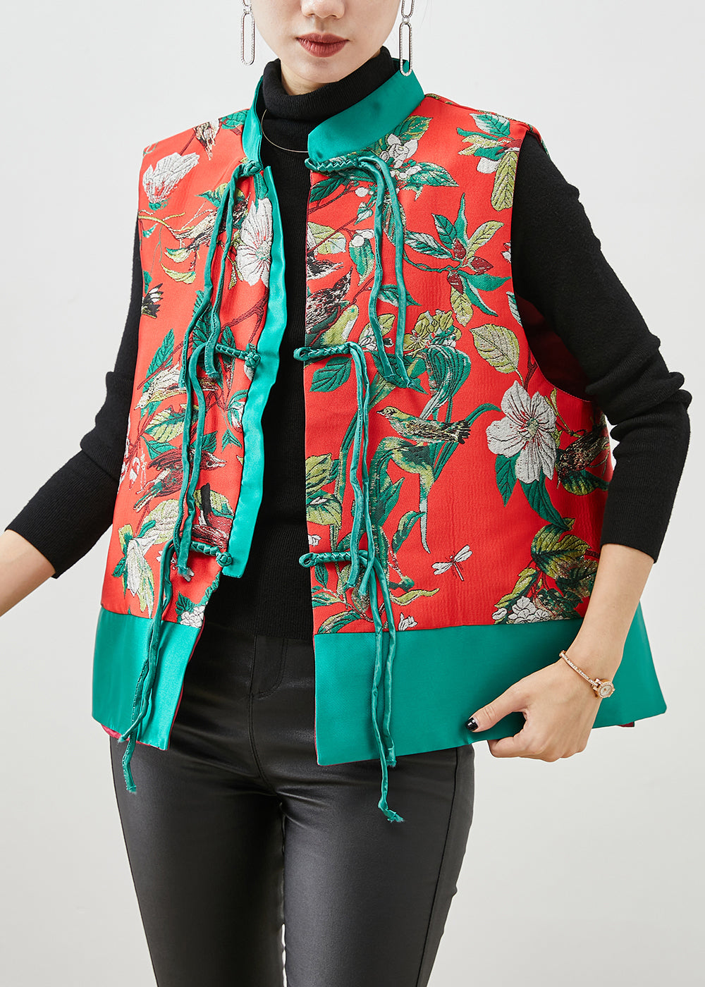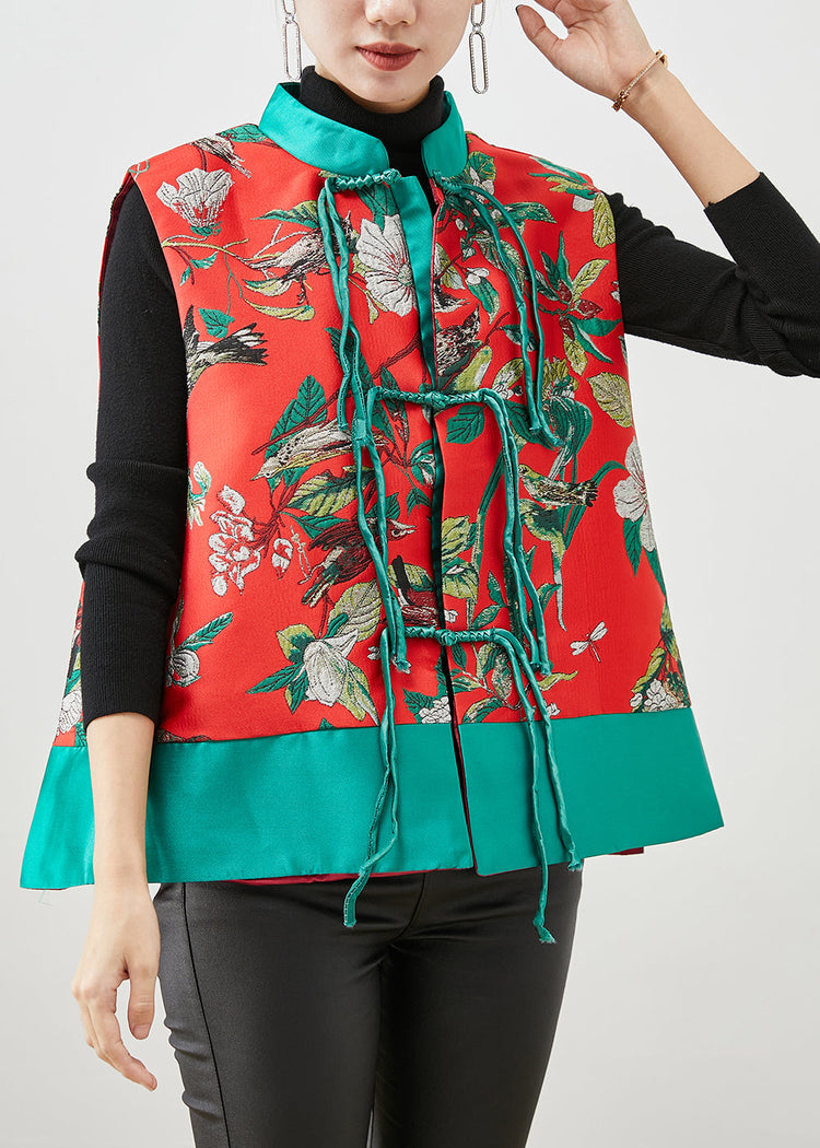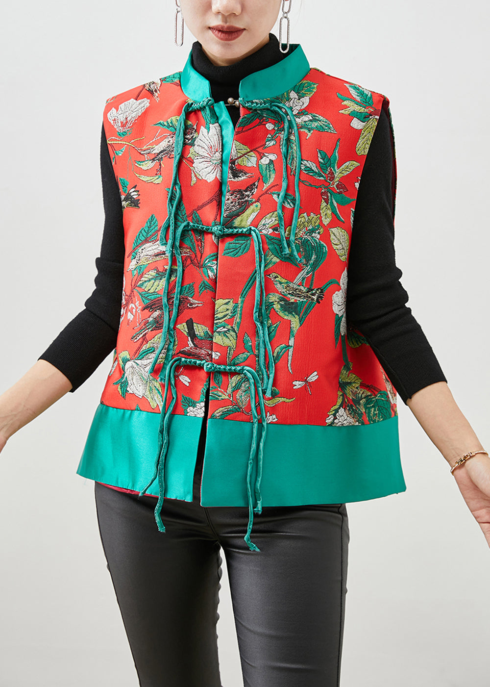 Italian Colorblock Tasseled Patchwork Jacquard Silk Vest Fall