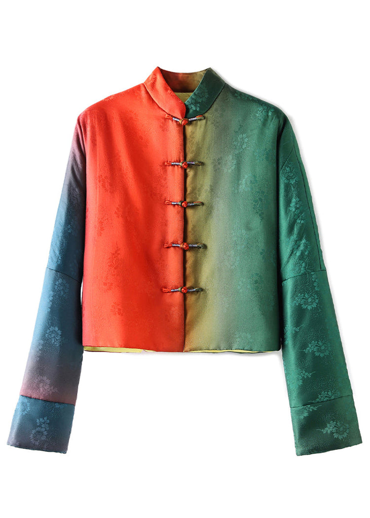 Loose Colorblock Stand Collar Button Patchwork Silk Parka Winter