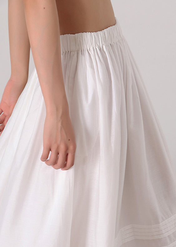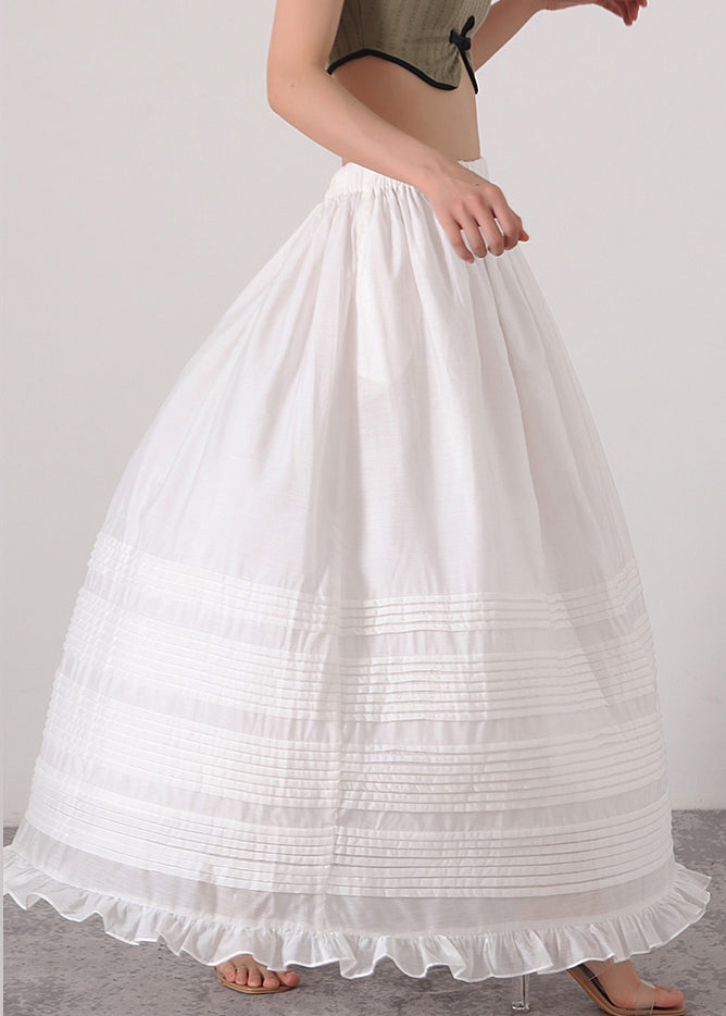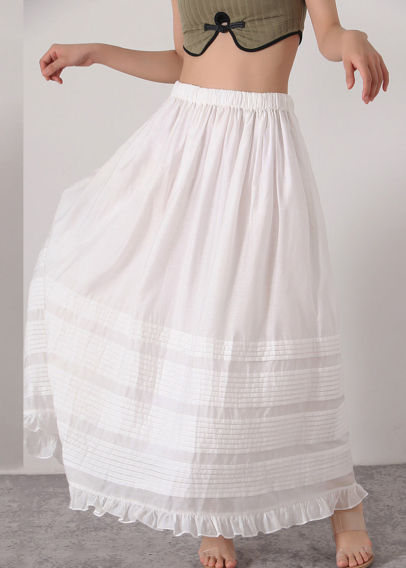 Loose White Ruffled Elastic Waist Silk Cotton Skirts Summer