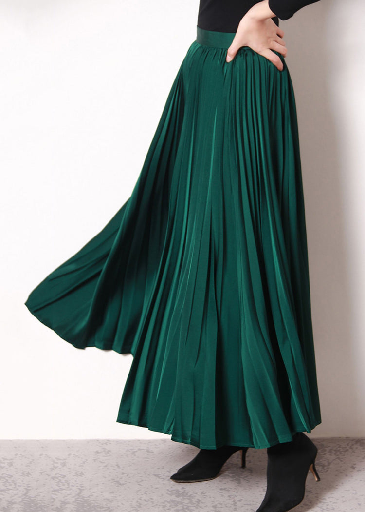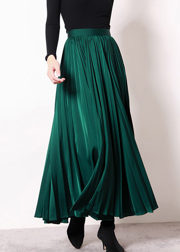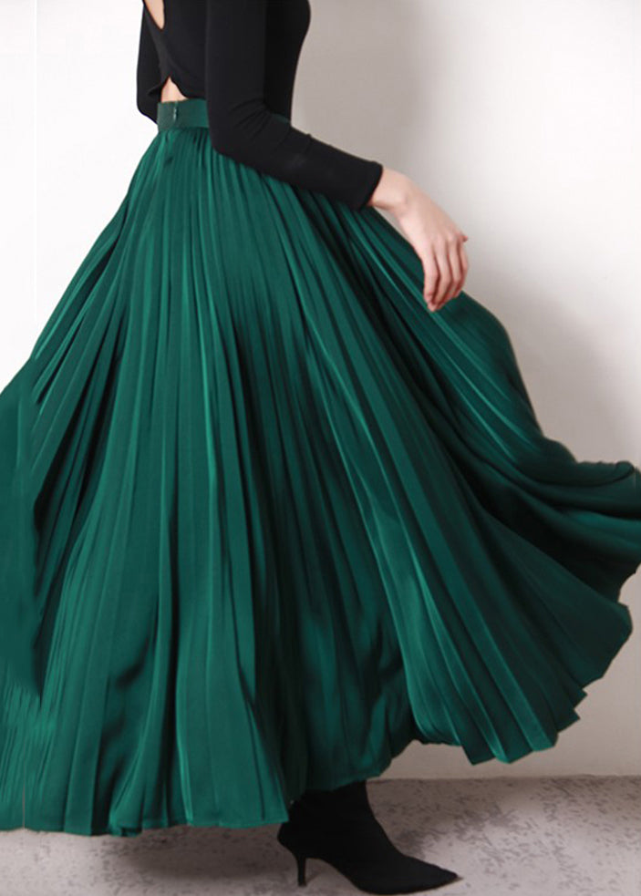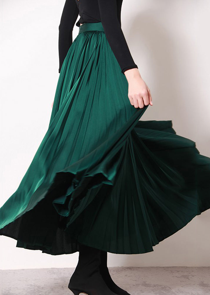 Simple Green Zippered Wrinkled High Waist Silk Skirt Spring