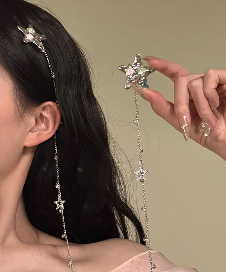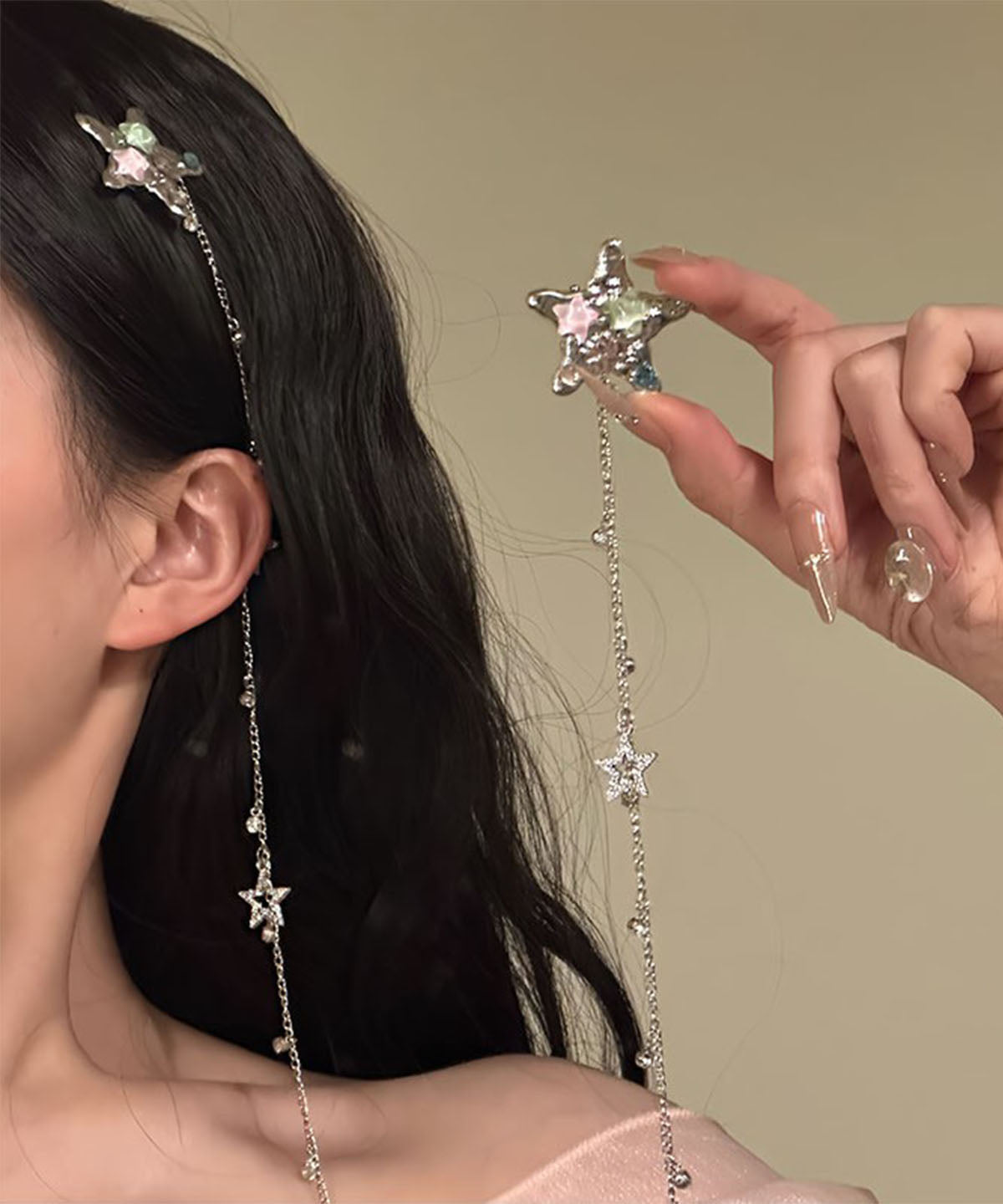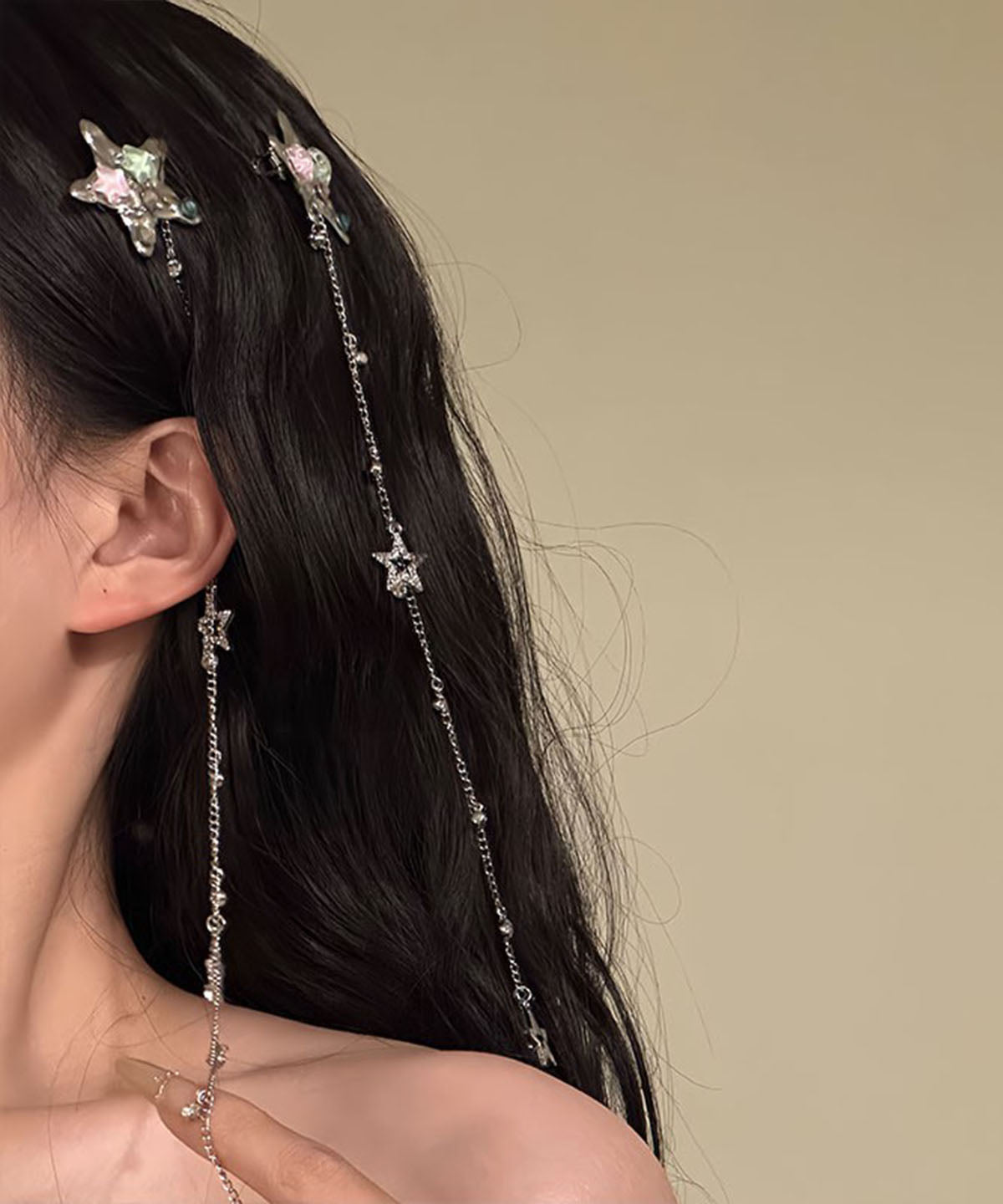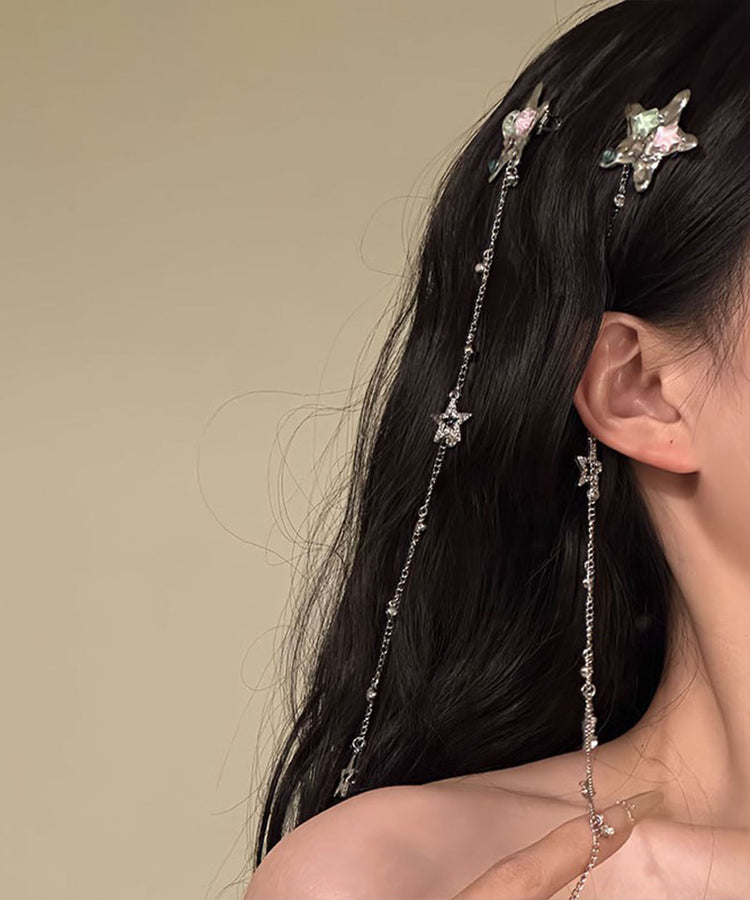 Skinny Silk Stainless Steel Pentagram Tassel Hairpin