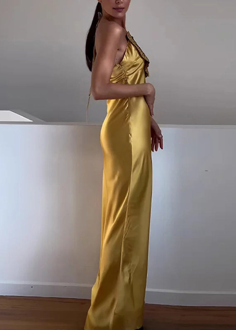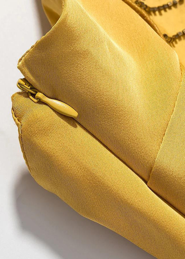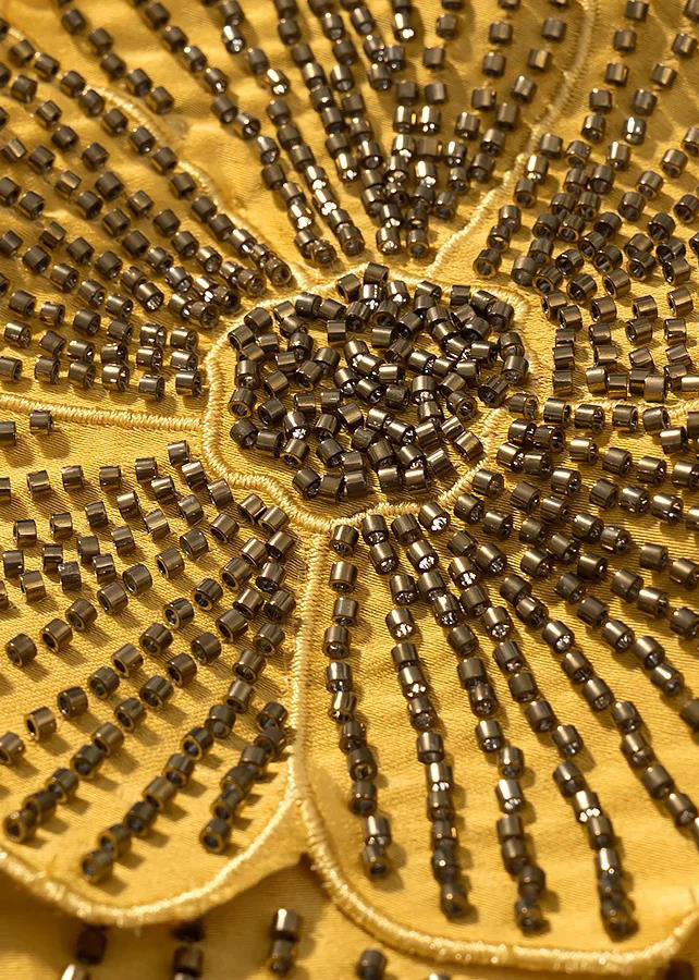 Stylish Yellow Floral Nail Bead Silk Party Dress Sleeveless