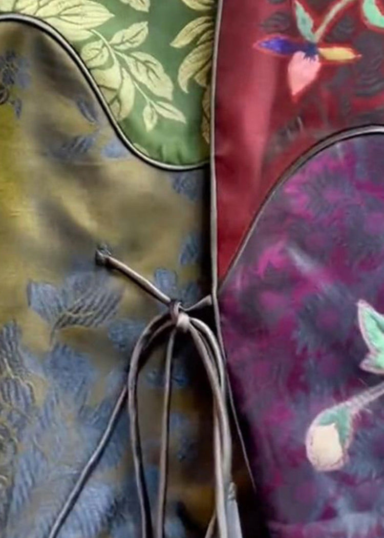 Unique Colorblock Asymmetrical Print Lace Up Patchwork Silk Waistcoat Sleeveless