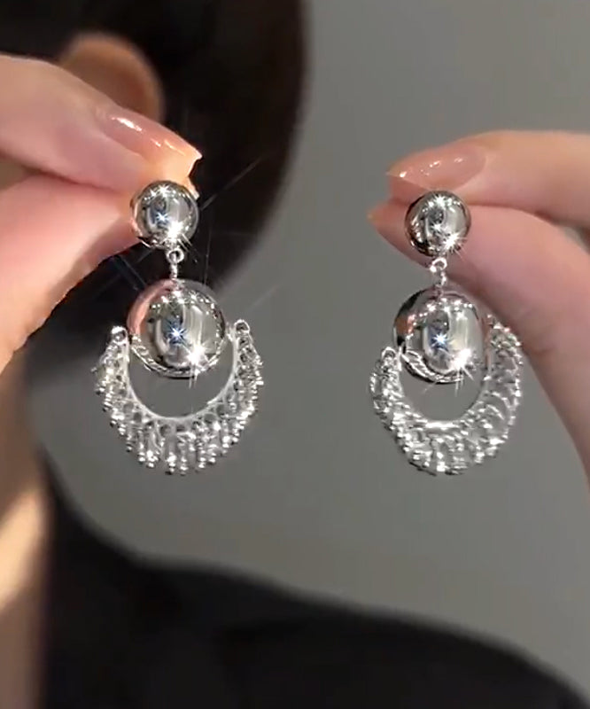 Unique Silk Stergild Silver Ball Tassel Drop Earrings