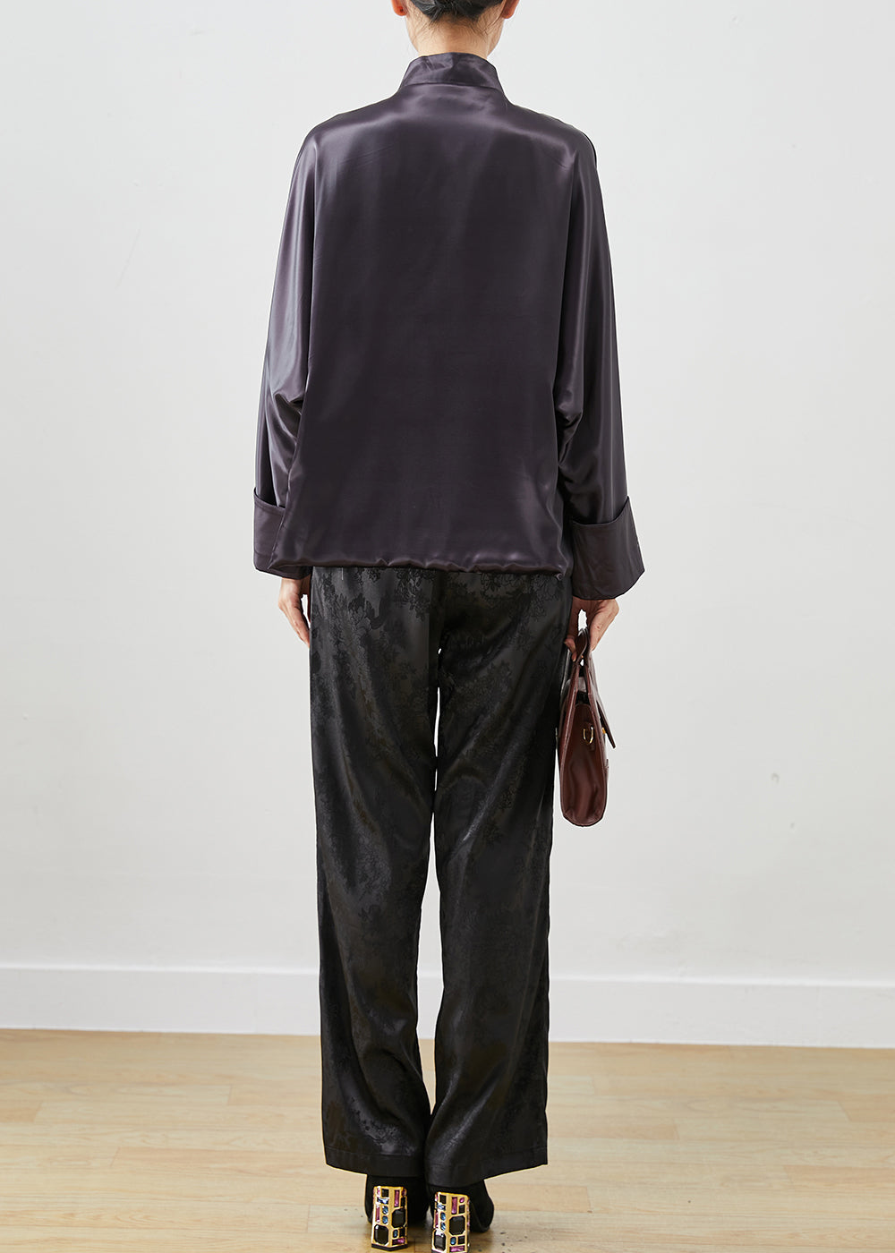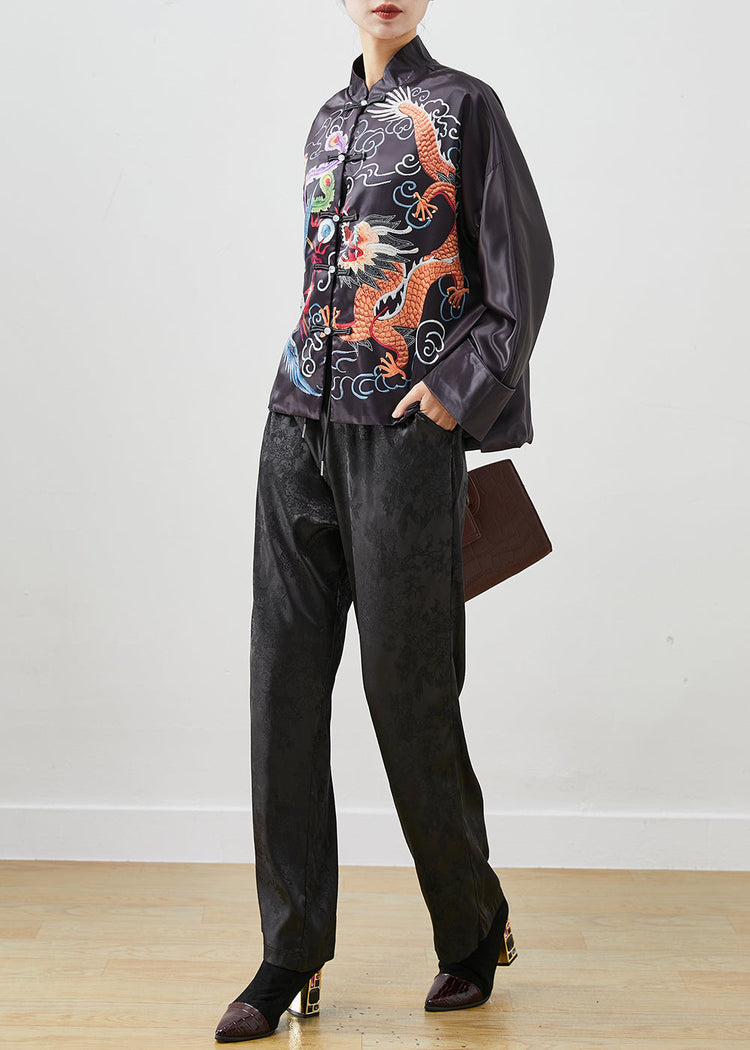 Vintage Black Embroideried Silk Chinese Style Two Piece Set Outfits Fall