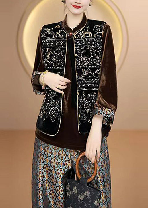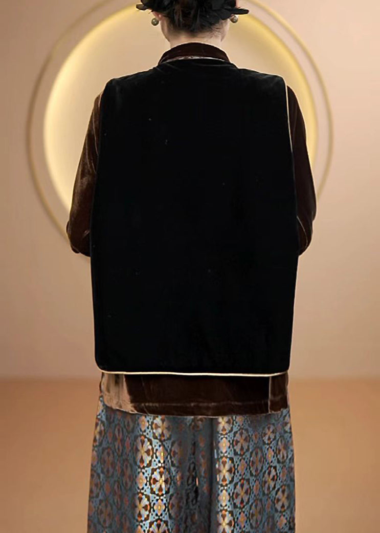 Vintage Black O Neck Embroideried Silk Vest Top Sleeveless