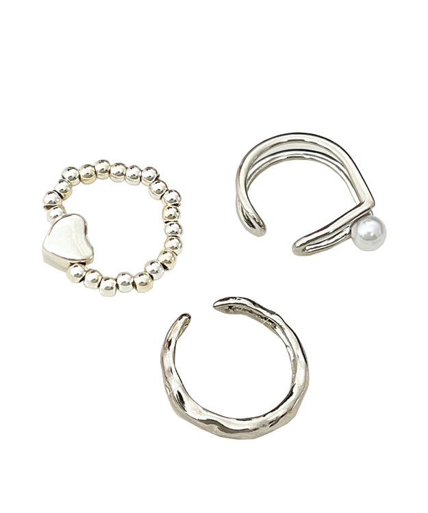 Vintage Silk Alloy Pearl Love Three Piece Set Rings