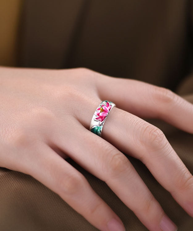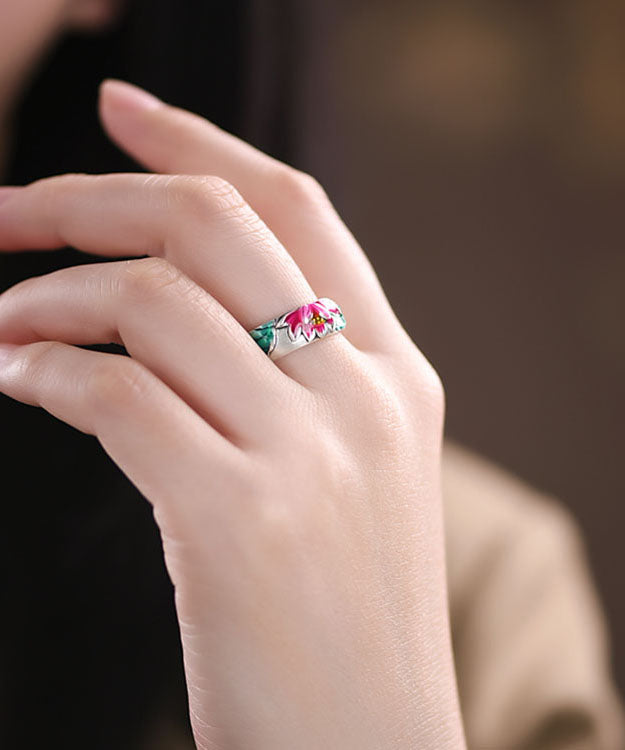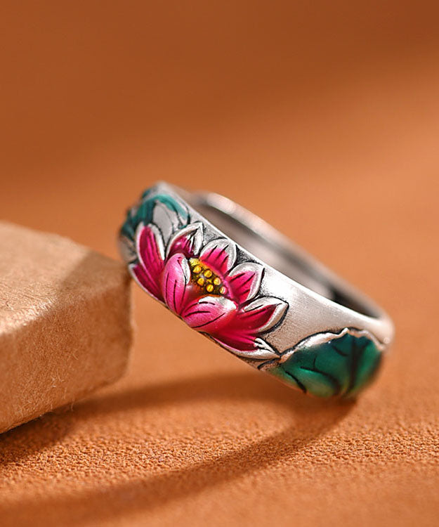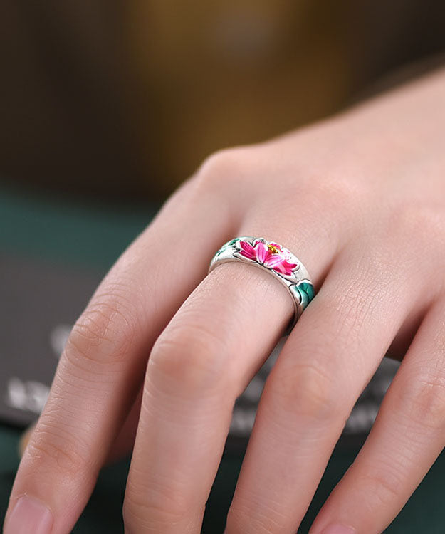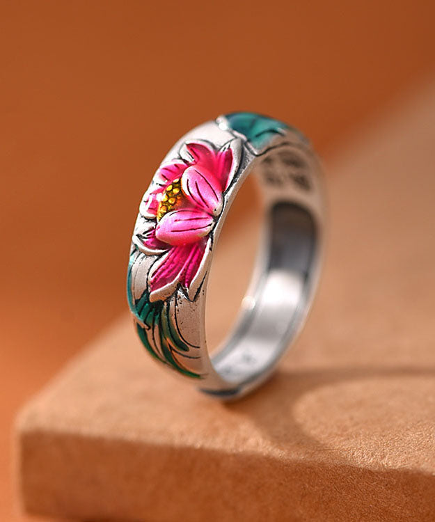 Vintage Silk Sterling Silver Enamel Lotus Rings
