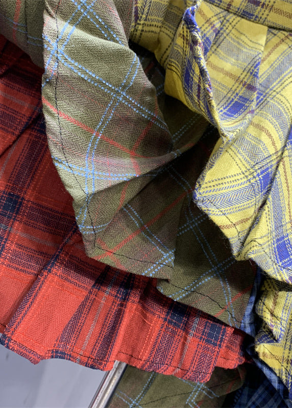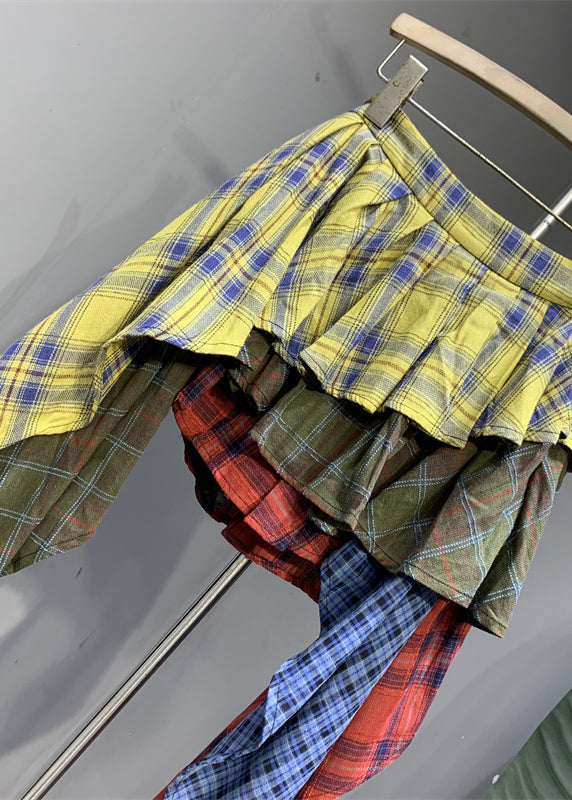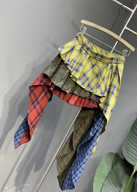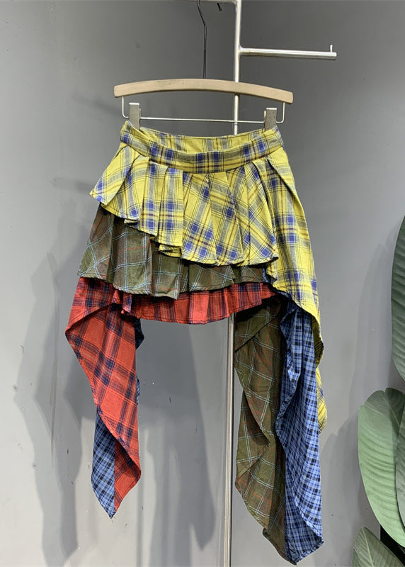 Chic Colorblock Plaid Asymmetrical Patchwork Skirts Summer