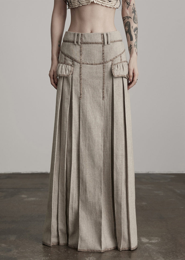 Fashion Apricot Wrinkled High Waist Patchwork Woolen Skirts Winter