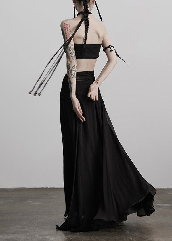 Boutique Black Tasseled Patchwork Exra Large Hem Silk Skirts Fall