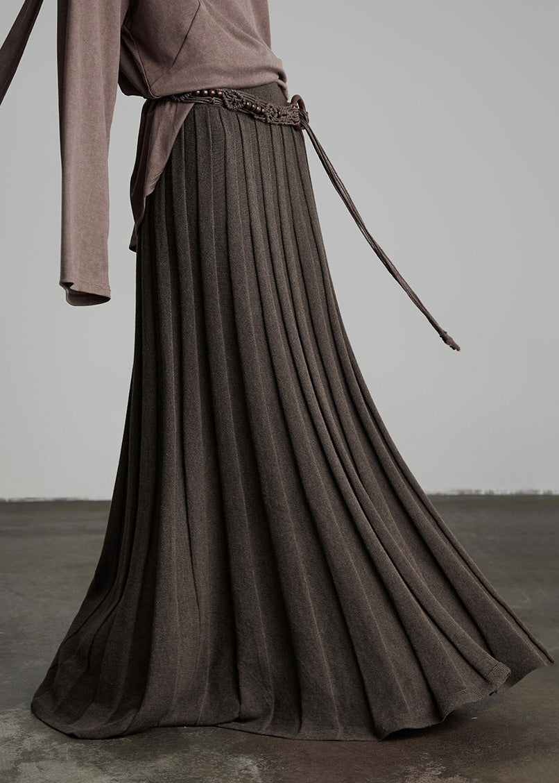 Chic Elastic Waist Pleated Skirt Spring Quilting Chocolate Kaftan Skirt