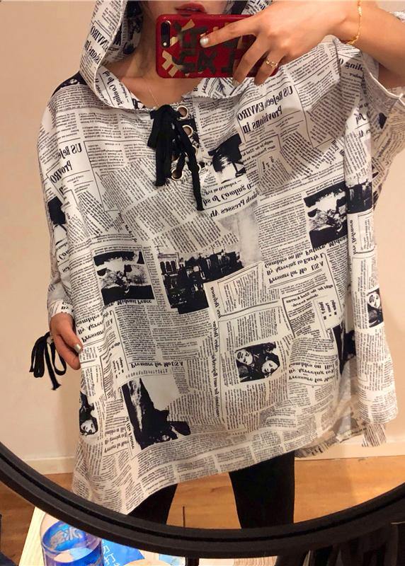 Women Asymmetrical Design Hooded Plaid Graphic Top Spring