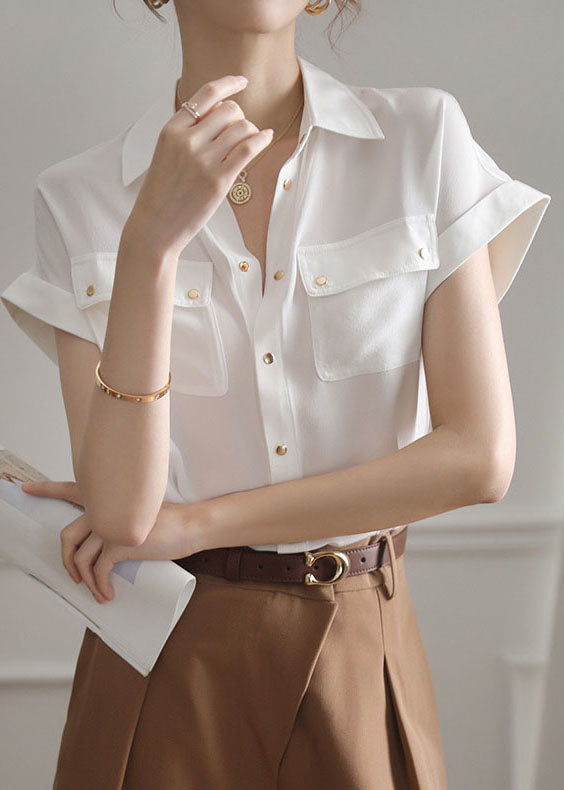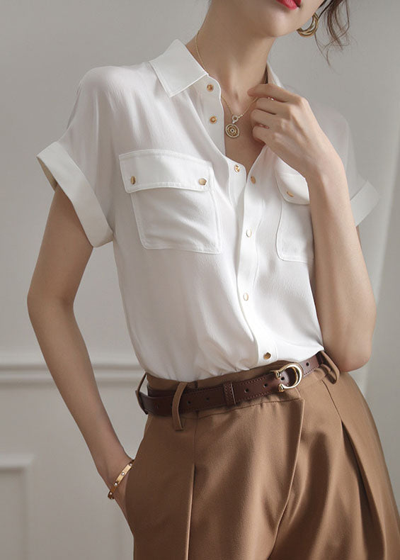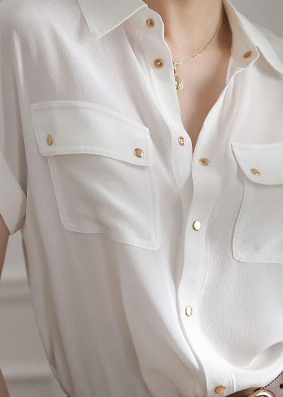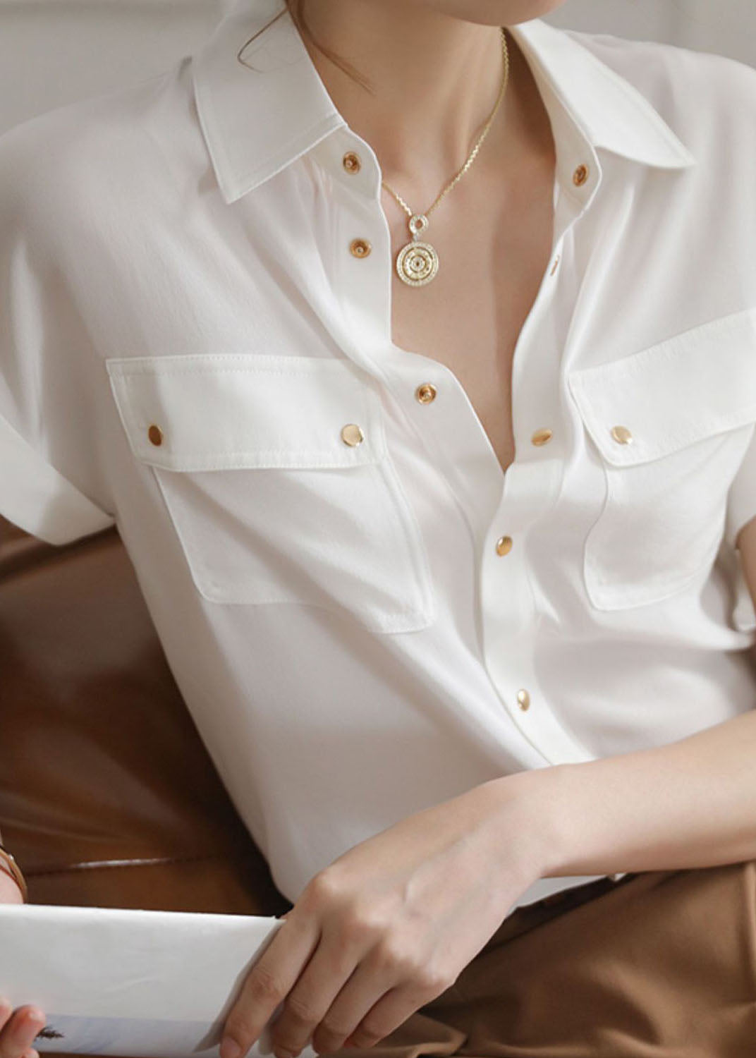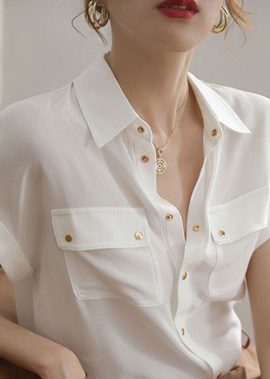 Vintage White Pockets Patchwork Cotton Shirts Top Summer
