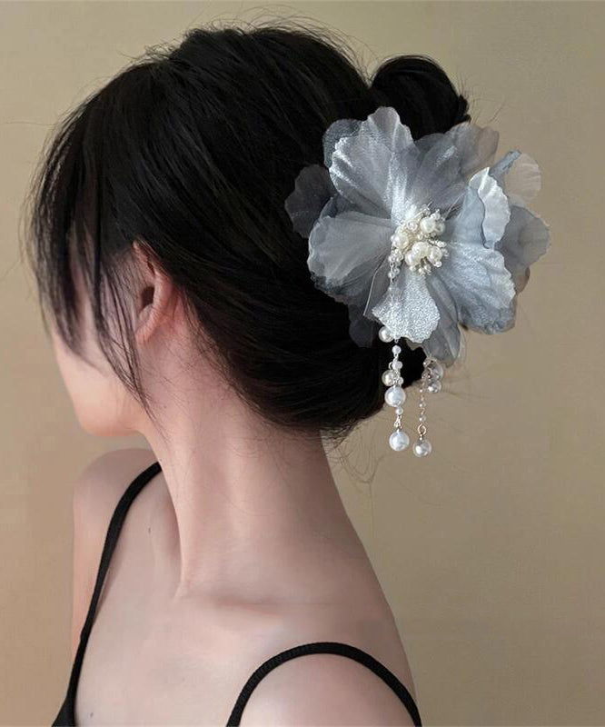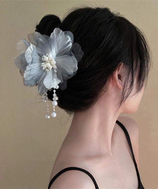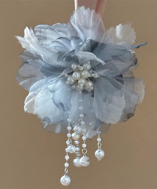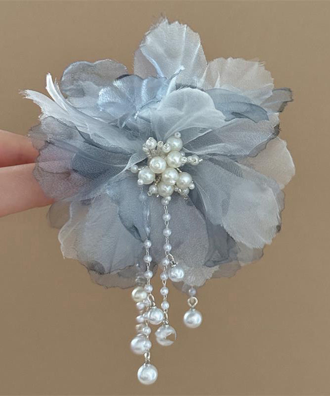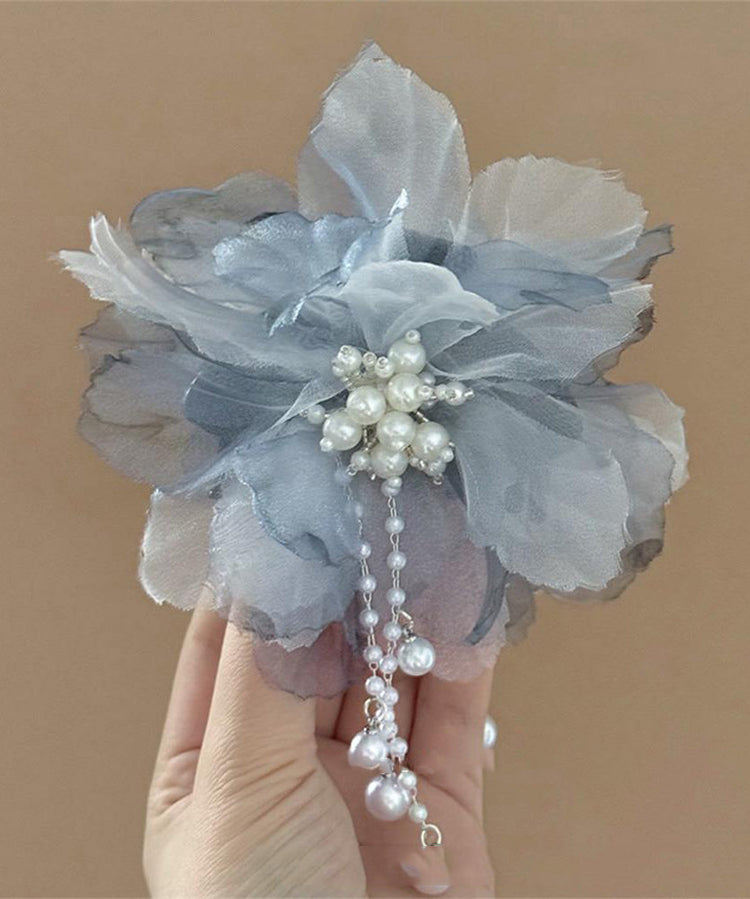 Gradient Color Blue Tulle Pearl Floral Tassel Hairpin