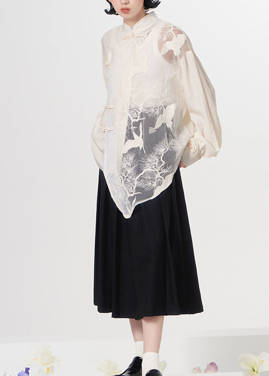 Chic Black O Neck Tulle Patchwork Cotton Mid Dress Fall