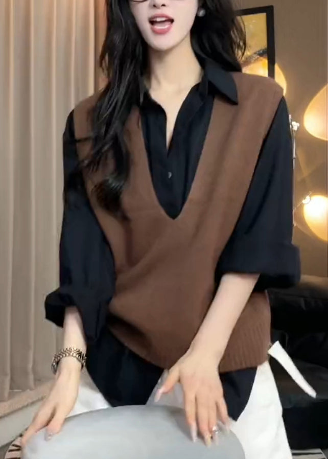 Women Grey V Neck Cozy Warm Knit Vest Tops Sleeveless