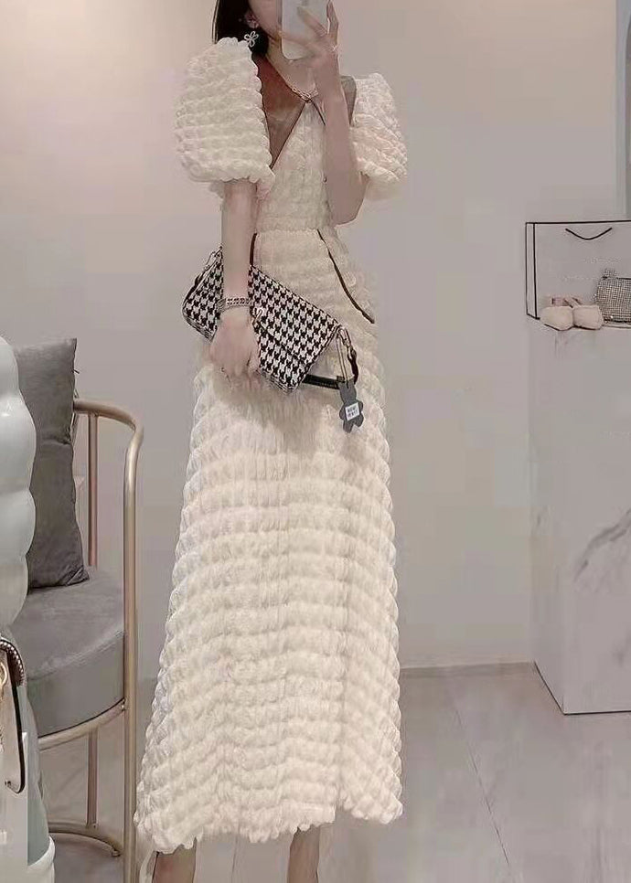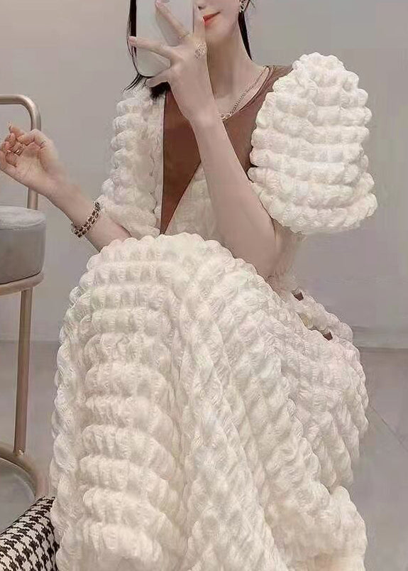 Fashion White Peter Pan Collar Tunic Faux Leather Long Dress Short Sleeve