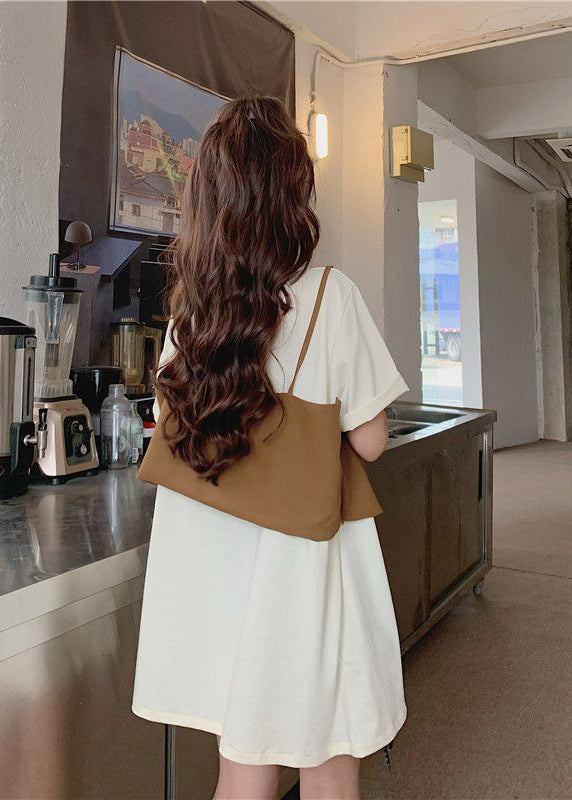 Unique White Oversized Patchwork Cotton Mini Dresses Summer
