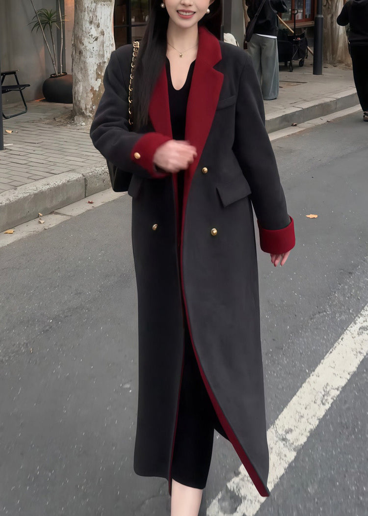 Boutique Black Peter Pan Collar Pockets Woolen Coat Spring