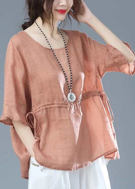 Casual Orange O Neck Drawstring Patchwork Cotton T Shirt Half Sleeve