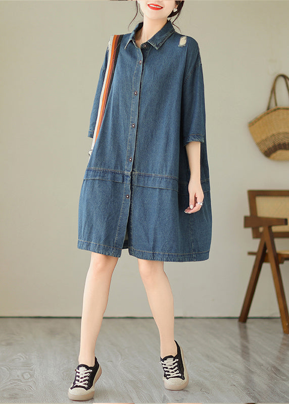 Loose Blue Peter Pan Collar Patchwork Denim Coat Bracelet Sleeve
