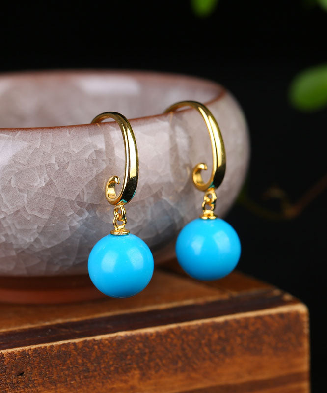 Elegant Blue Sterling Silver Overgild Turquoise Drop Earrings