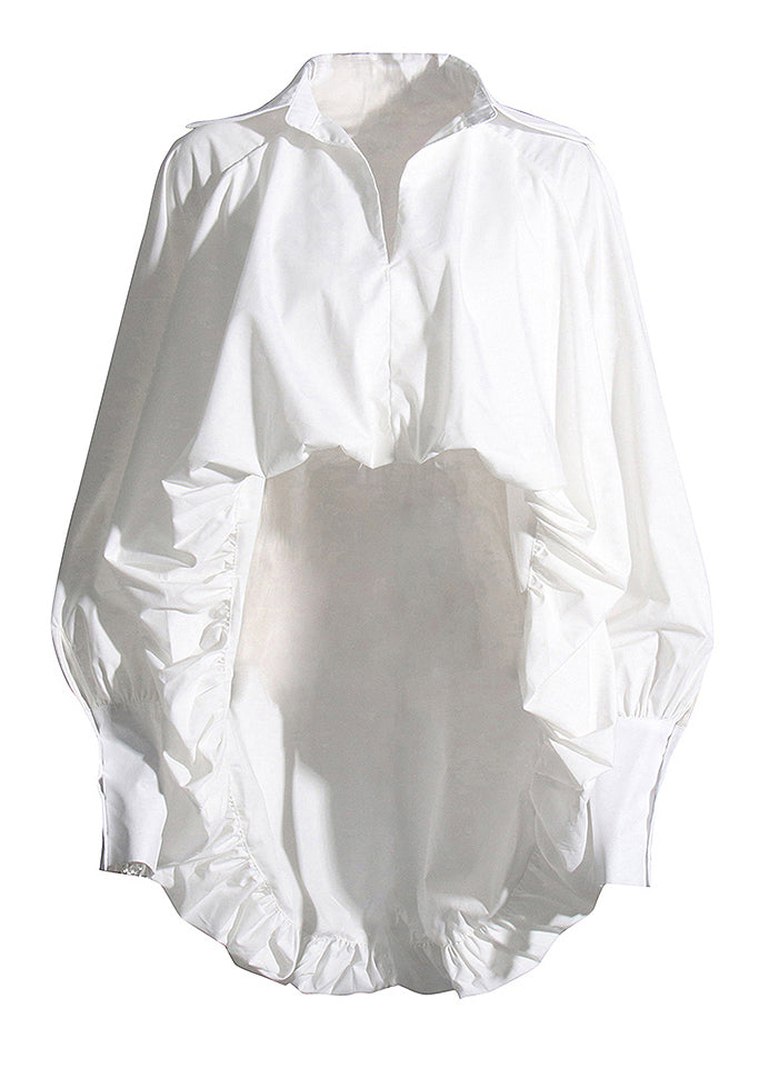 Stylish White Asymmetrical Wrinkled Cotton Shirts Lantern Sleeve