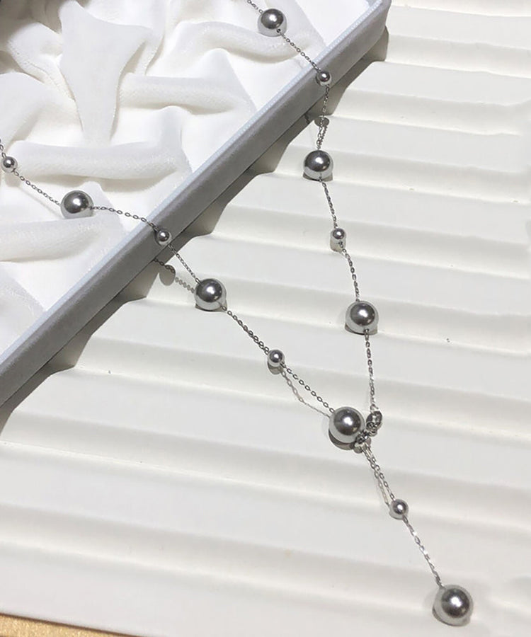 Fine Grey Stainless Steel Pearl Tasse Lariat Necklace