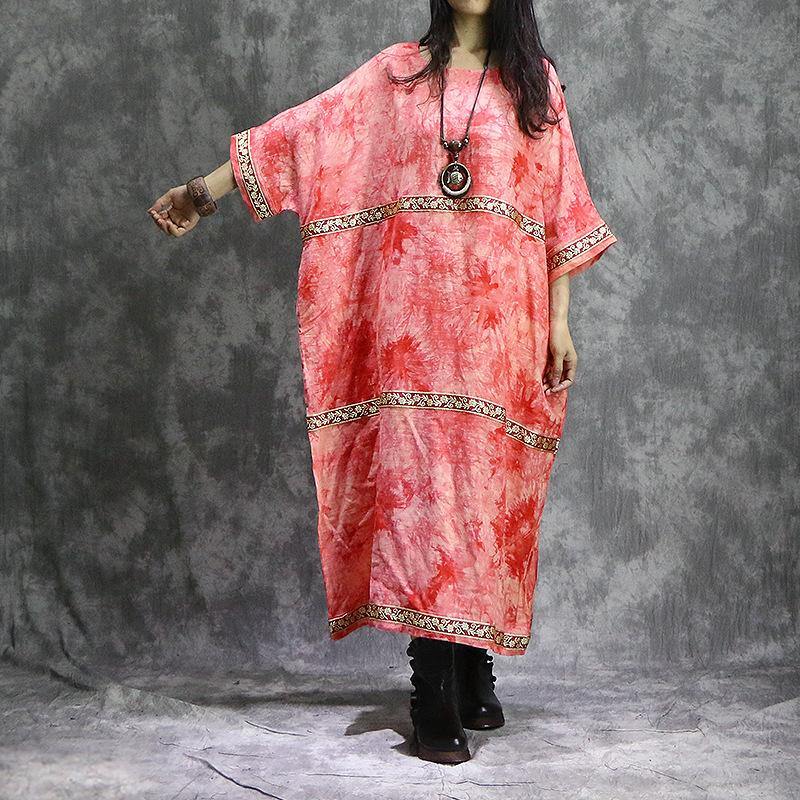 Loose O-Neck Prints Linen Robes Stylish Work Outfits Red Loose Dress Summer