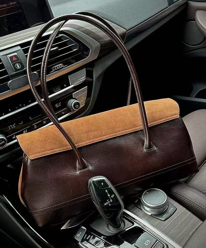 Beautiful Khaki Patchwork Durable Faux Suede Shoulder Bags