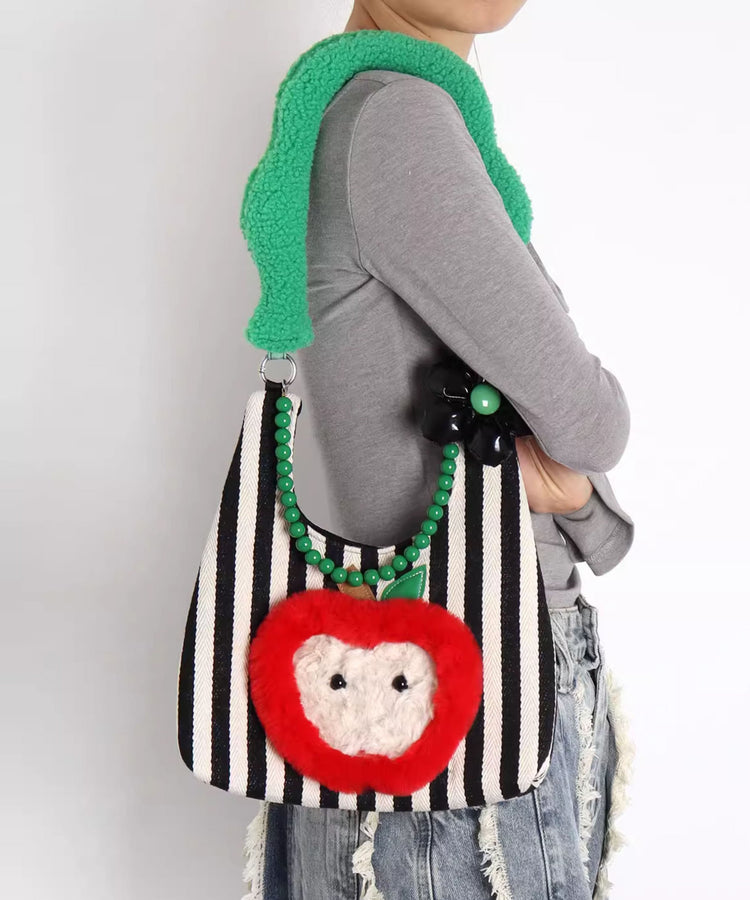 Stylish Black Striped Patchwork Apple Canvas Shoulder Bags