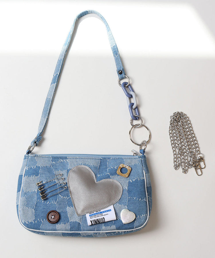 Unique Denim Blue Print Patchwork Love Cross-body Handbags