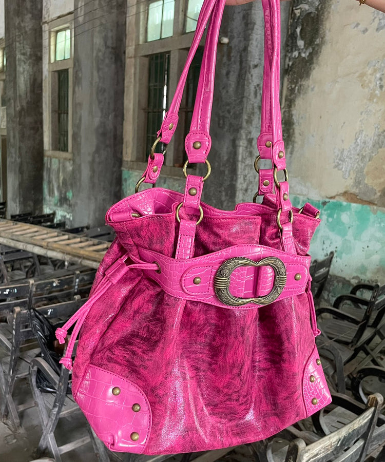 Beautiful Rose Drawstring Faux Leather Pouch Bag