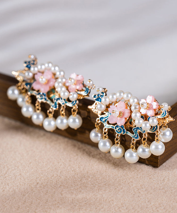 Chinese Style Gold Alloy Pearl Floral Tassel Hairpin