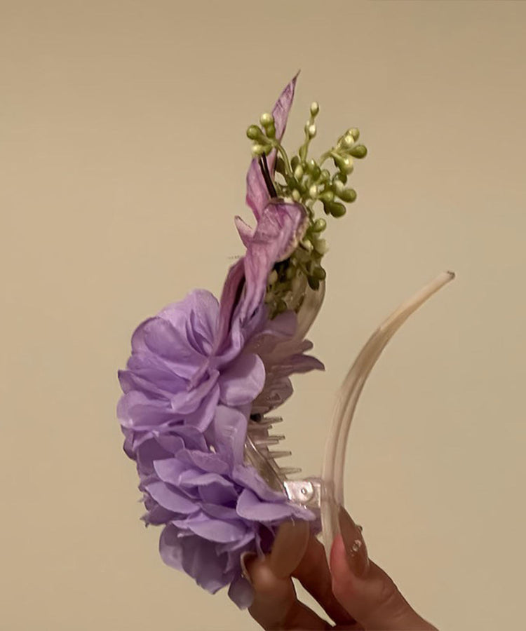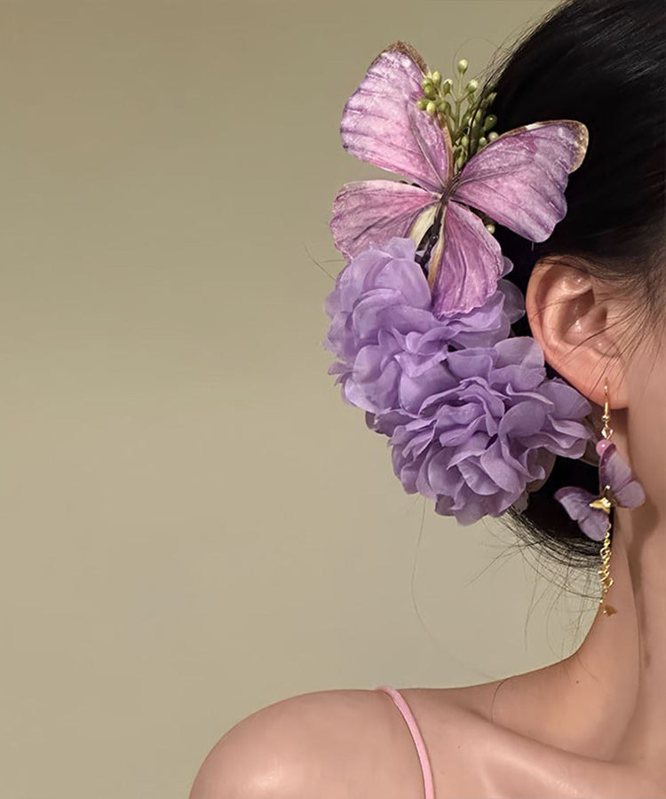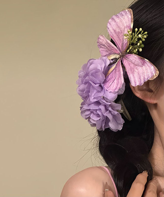 Cute Purple Sterling Silver Overgild Floral Butterfly Hairpin