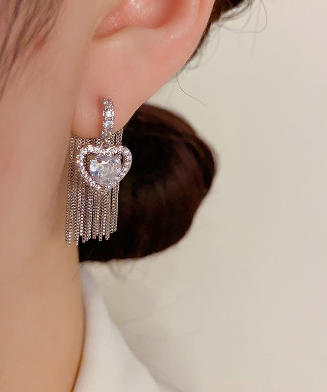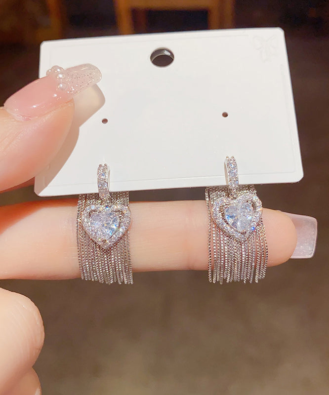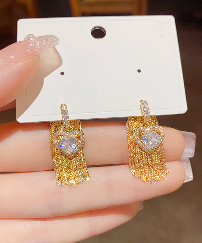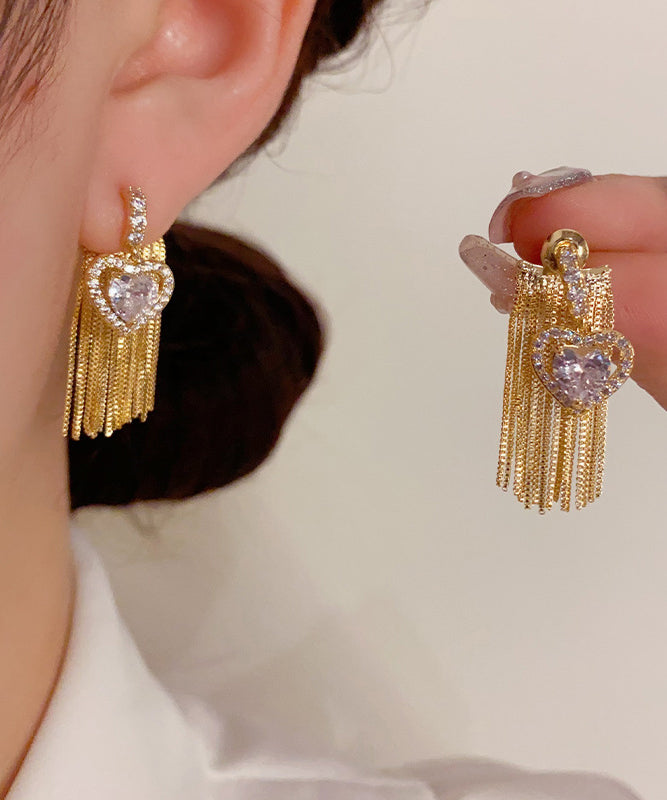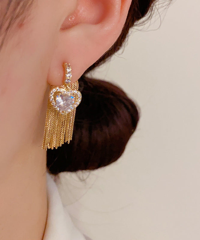 Fashion Gold Copper Overgild Zircon Love Tassel Drop Earrings