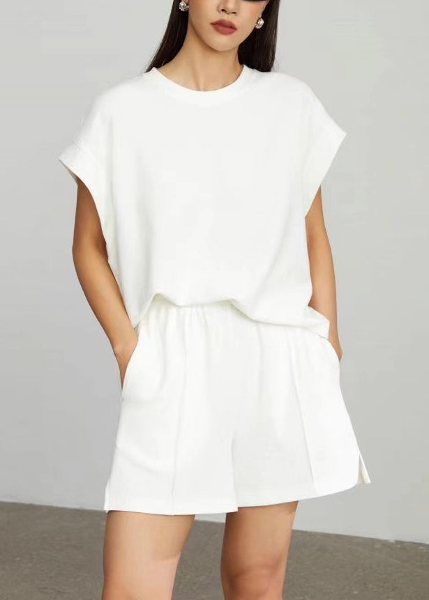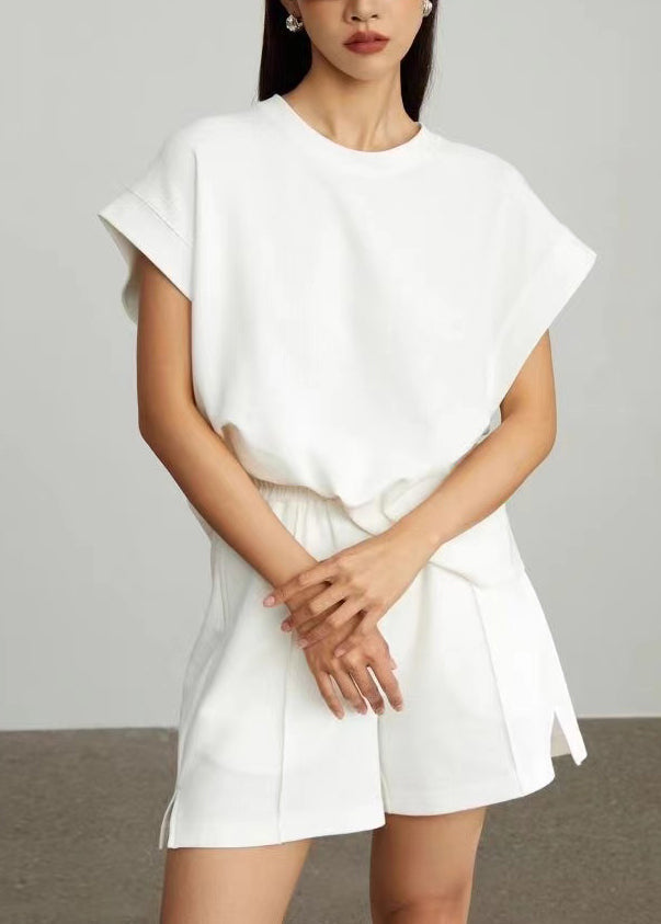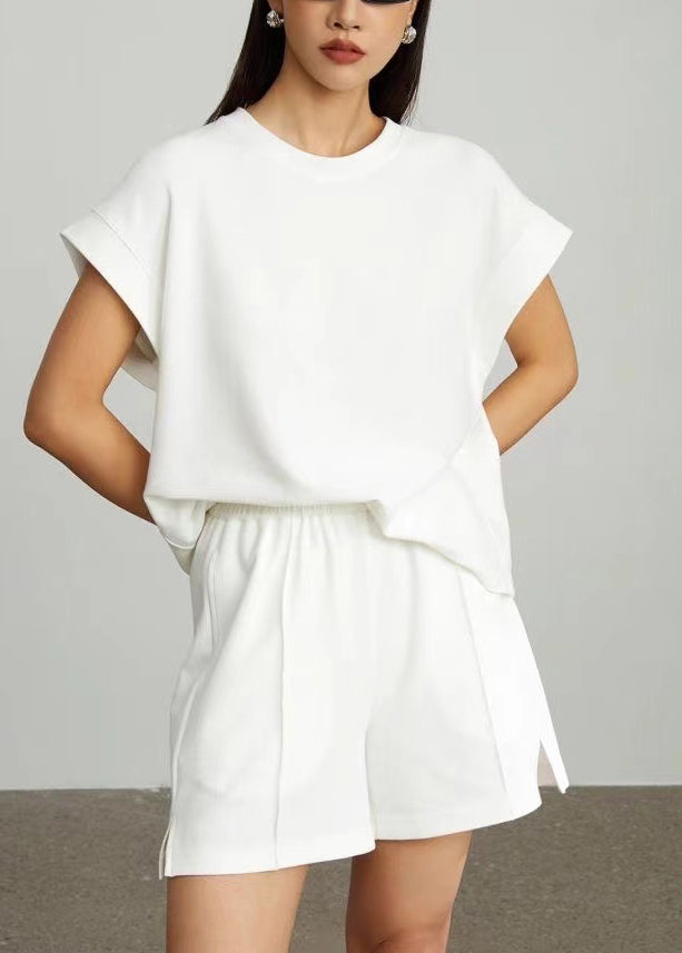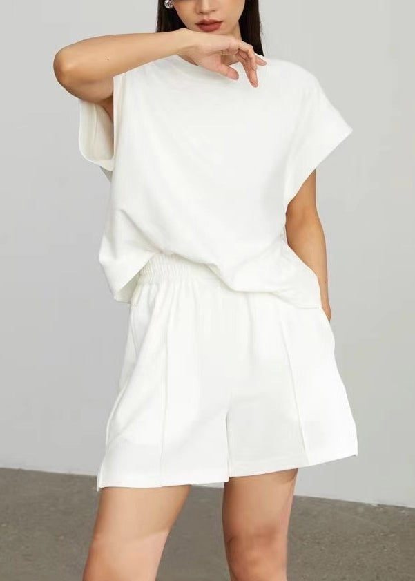 Simple White Oversized Cotton Tops And Shorts 2 Piece Outfit Summer