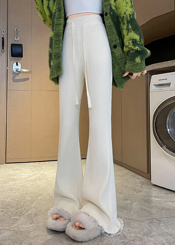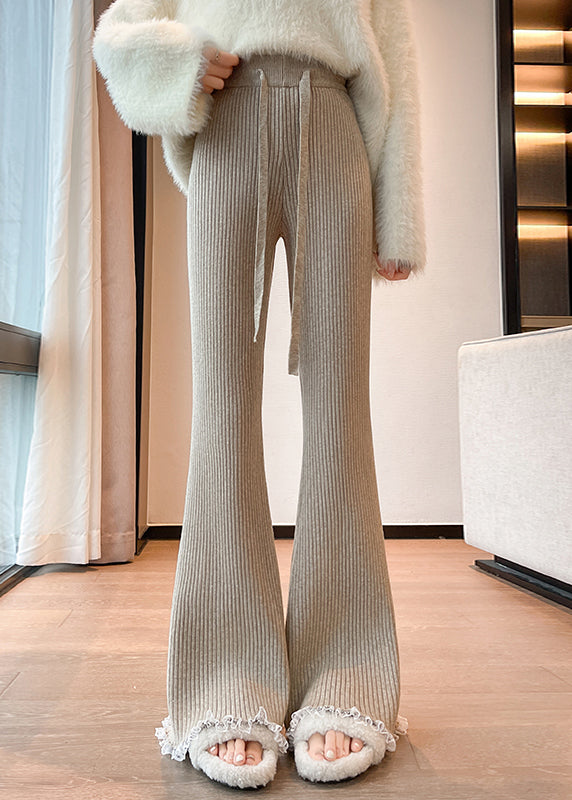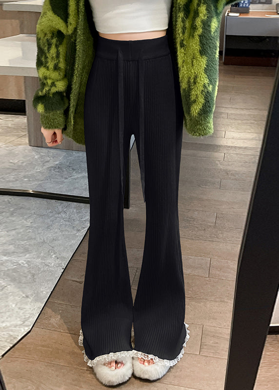 Slim Fit Wine Red Lace Elastic Waist Patchwork Knit Flared Trousers Fall